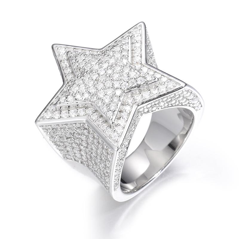 【R46 live2】 S925 Five Star Synthetic Moissanite Men Rings 925 Sterling Silver Ring UCCIYOD VVS Round Synthetic Moissanite  Hip Hop Jewelry