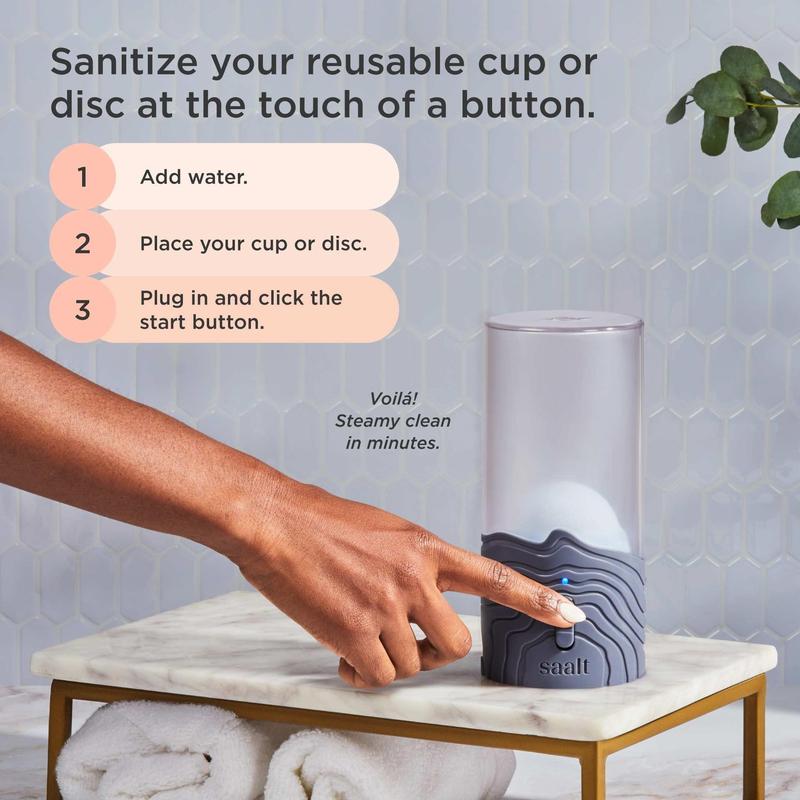 The Saalt Steamer – Sanitize your cup or disc at the touch of a button.