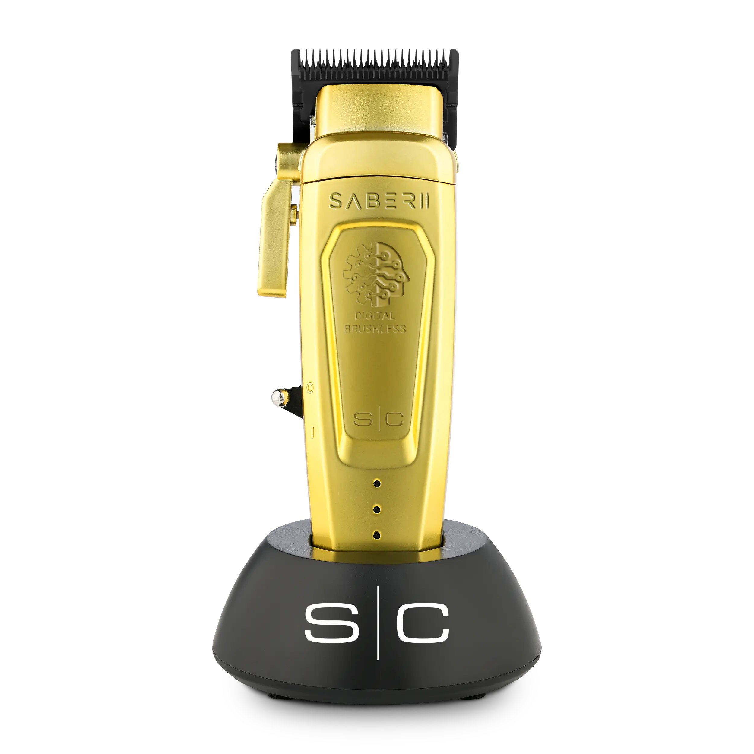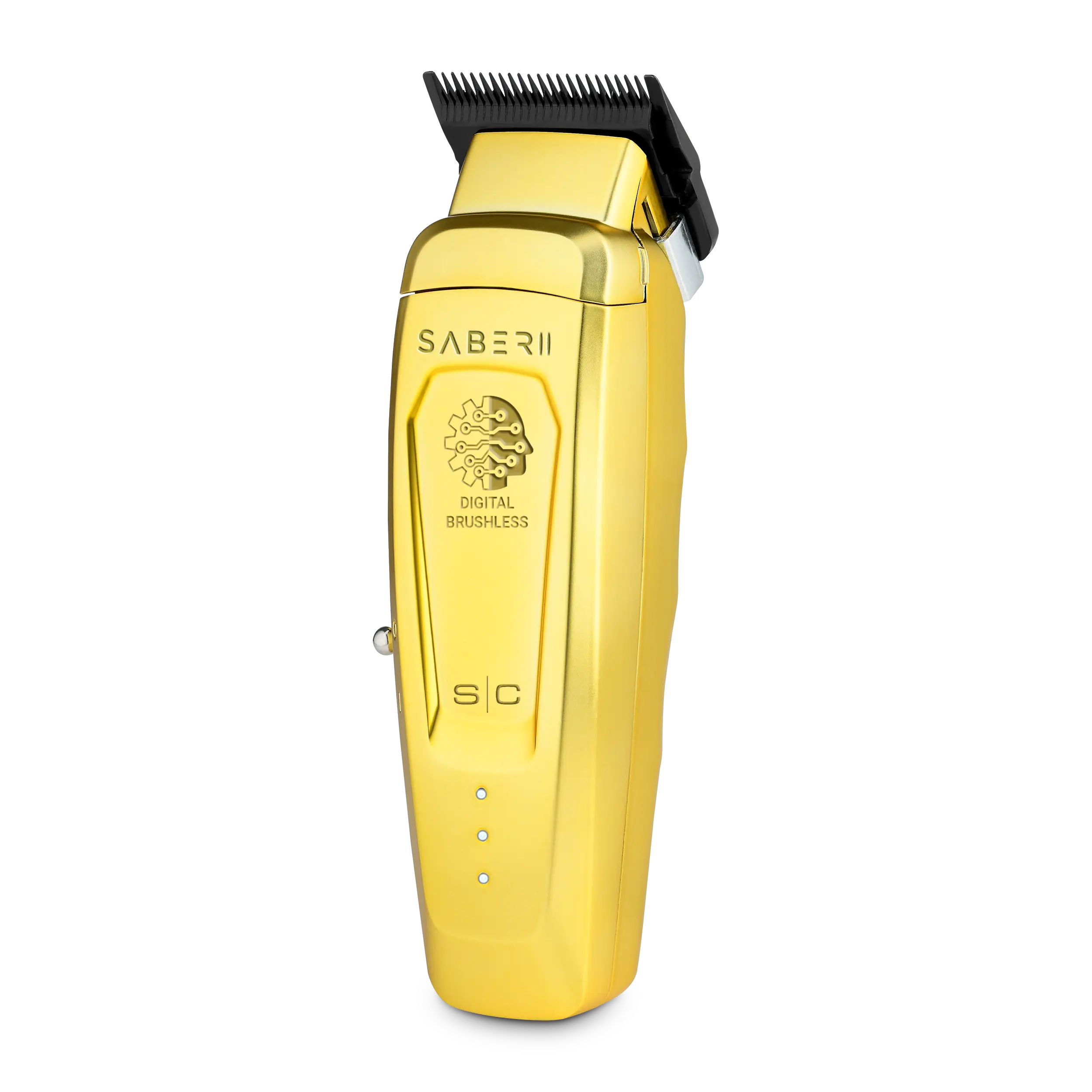 Elevate your grooming with the Saber 2 clipper. It features an EON digital brushless motor, operating at 7,200 rpm. This motor ensures efficiency, optimization, and noise reduction. The Black Diamond Carbon DLC Echo Fixed Blade delivers a louder crunch with a Shallow 2.0 cutter for a smooth, no-pulling cut. Perfect for precise and comfortable grooming.