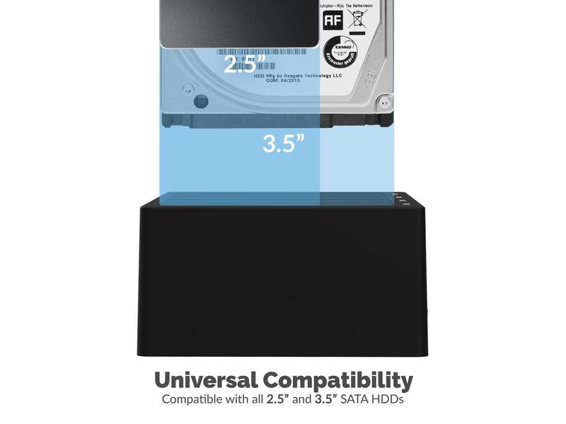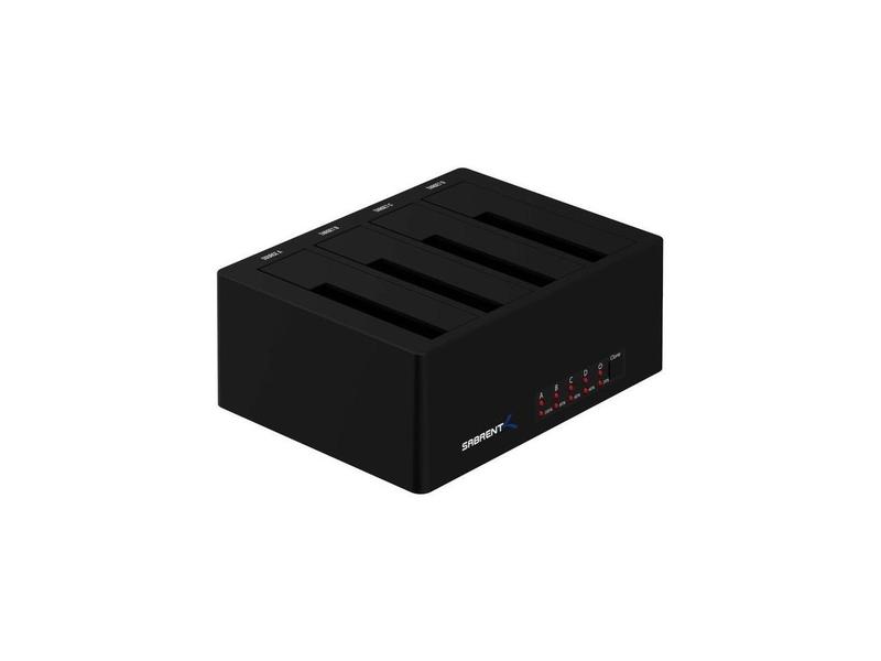 ·The Sabrent DS-U3B4 4-Bay USB 3.0 SATA 2.5/3.5 SSD/HDD Docking Station allows you to insert your standard 2.5" or 3.5" drive(s) into the docking station bays and instantly access drive content/transfer data on up to 4 hard drives at one time; fully hot-swappable.The Sabrent 4-Bay Docking Station requires no installation, no enclosure assembly, no software, and no driver downloads; just plug and play.Employ your Sabrent 4-Bay Docking Station to promptly clone your drives with just the push of a button.Features:Tool-free installation, plug and play, hot swappable.Transfer speeds up to 5Gbps.Supports four SSD/HDD drives, 2.5"or 3.5," at one time.Backwards compatible with USB 2.0/1.1.LED indicators.