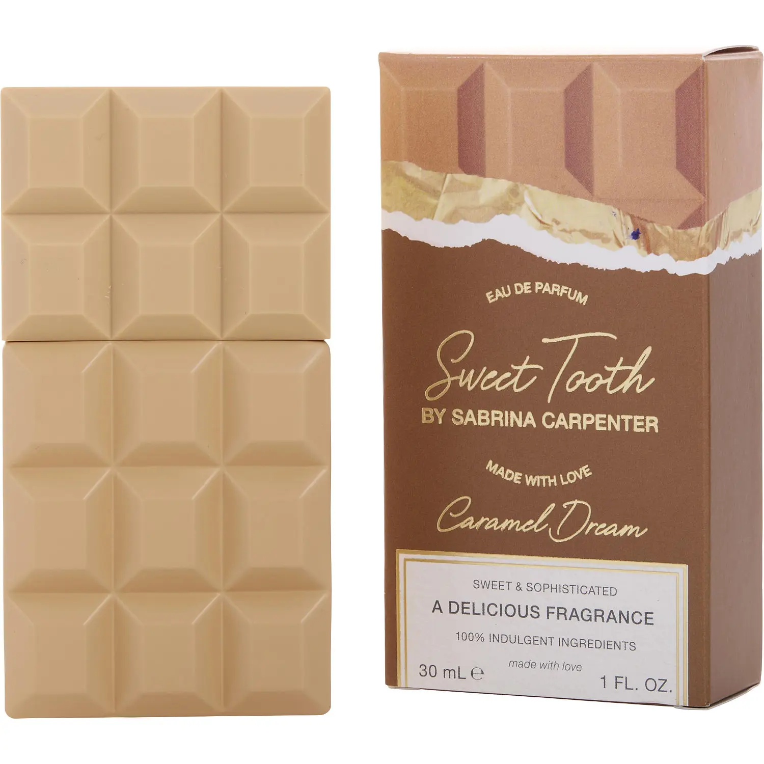 This new decadent fragrance has a luxurious caramel twist, bursting with rich flavor. A seductive incarnation of Sweet Tooth, Caramel Dream is both sophisticated and playful. Caramel exists in many forms; sticky and smooth, bitter and sweet, hard and soft. Like Caramel, this fragrance creates a juxtaposition of scents and emotions made to awaken the senses with mouth watering delight. Reimagined in a light caramel color the iconic chocolate bar shaped bottle is dusted with a pearlescent opaque finish for an irresistible sugary sparkle. Unwrap and indulge in Sabrina's second fragrance.