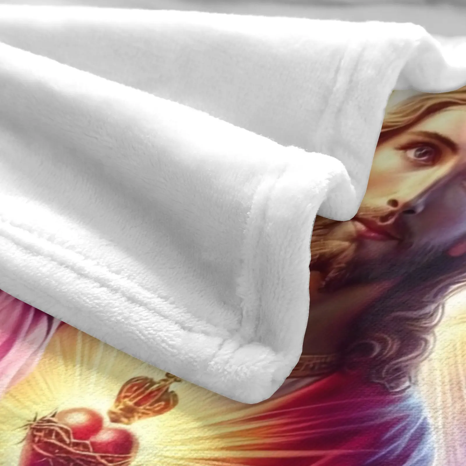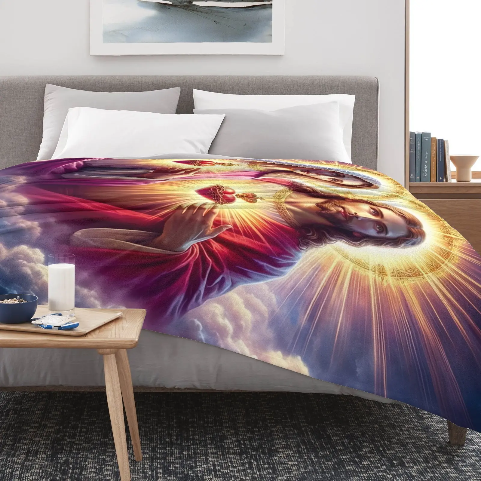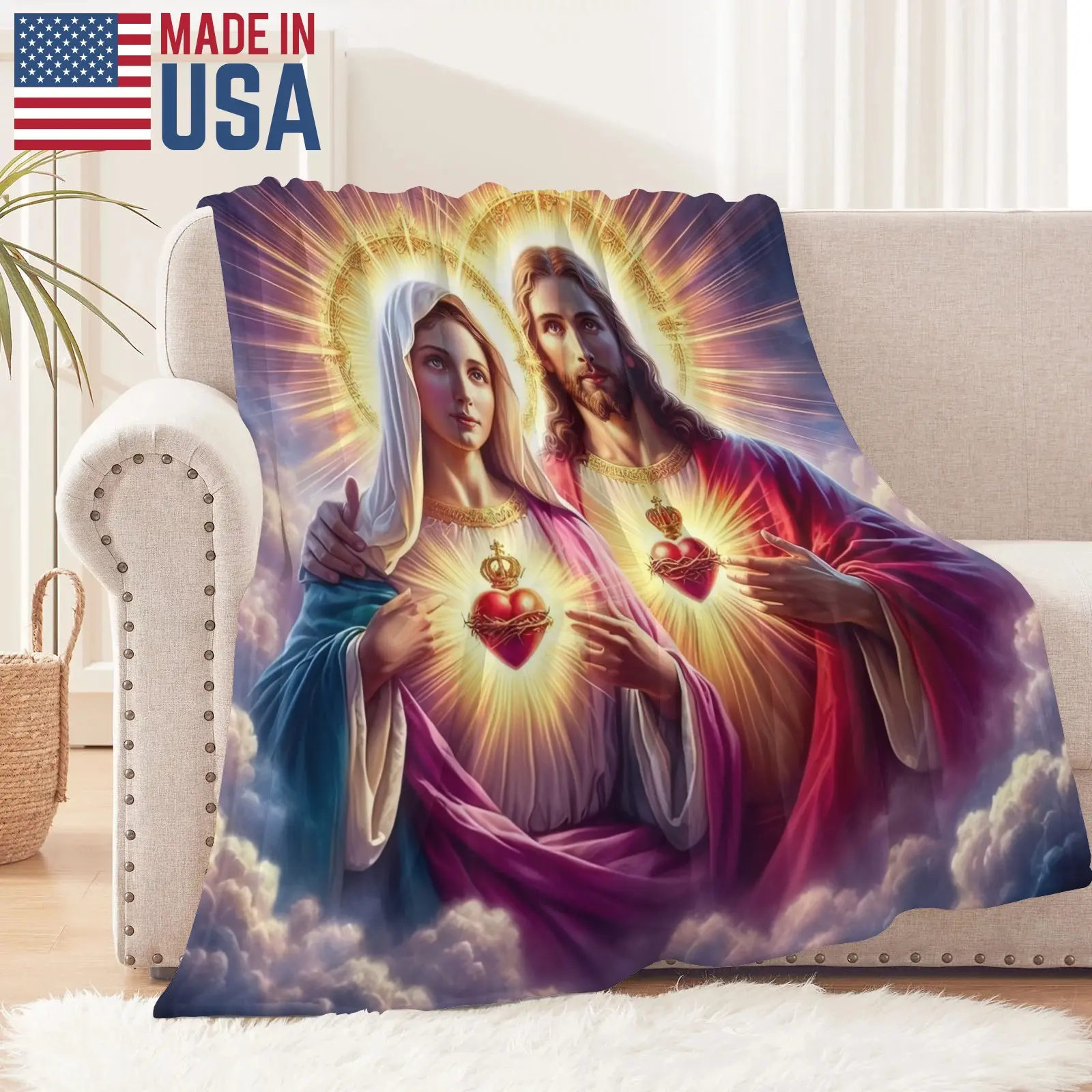 Sacred Heart of Jesus & Mary Flannel Blanket Soft Cozy Gift Throw with Inspirational Christian Design Perfect for Gifting to Believers Snuggling Warmly or Adding Devotional Spiritual Charm to Any Home Space