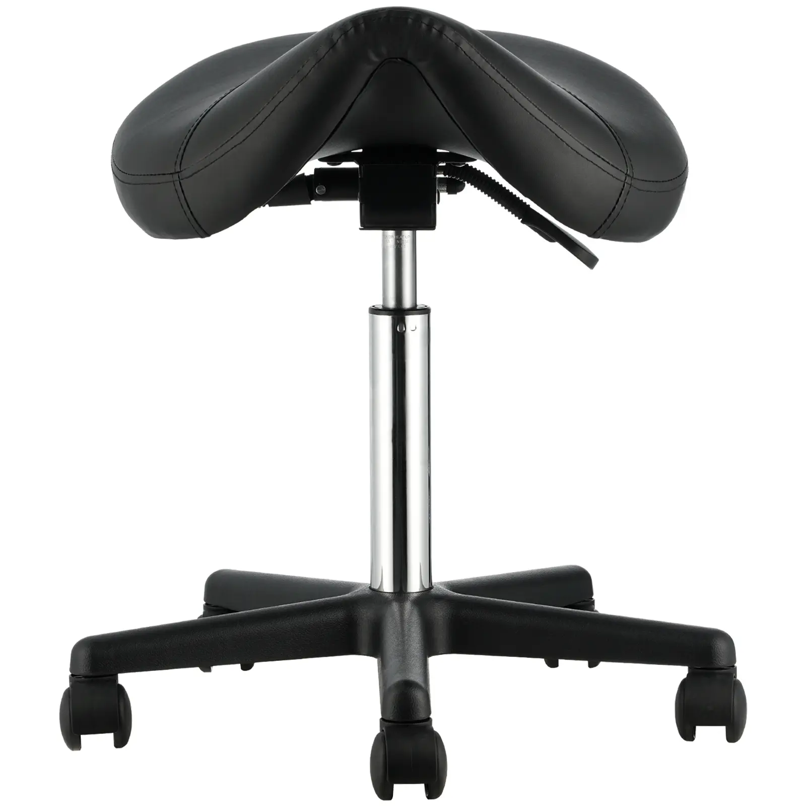 • Relieve Back and Hip Stress: Experience optimal comfort with our revolutionary saddle stool with wheels. Not only does it help correct your posture, but it also prevents slouching and alleviates strain on your back, neck, and shoulders. Additionally, the angle of the saddle cushion is adjustable, allowing you to personalize your comfort experience.