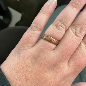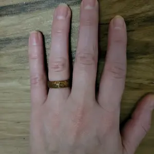 I absolutely love my ring! So beautiful and detailed. I usually wear a size 7 on my ring finger, but they were sold out so I settled with a size 8. So it tuns a tad small at first until you get it worn in.
