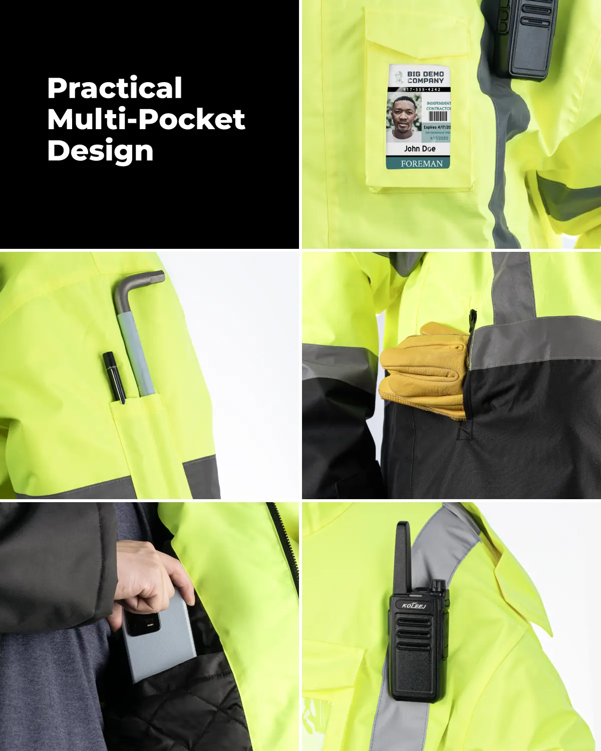 I ordered it on TikTok shop it was here in a few days I couldn’t believe it. The hi viz reflective safety gear is required at my job. This coat works and looks great. Keeps me warm and dry only issue is it’s a 3x but wears as a 4x it just wears bigger.