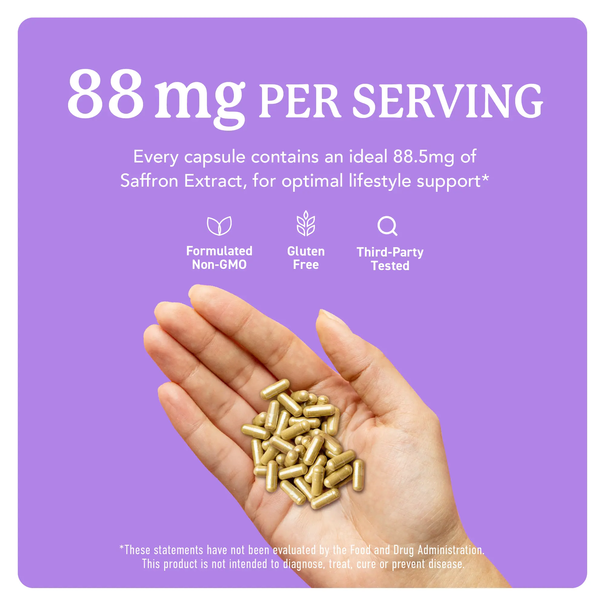 Known as the "Sunshine Spice," saffron contains crocin and safranal. These compounds support a brighter mood, focus, clarity, and energy levels. Achieve the balance needed to feel your best. Every bottle provides a 3-month supply of 90 gluten-free, non-GMO capsules.
