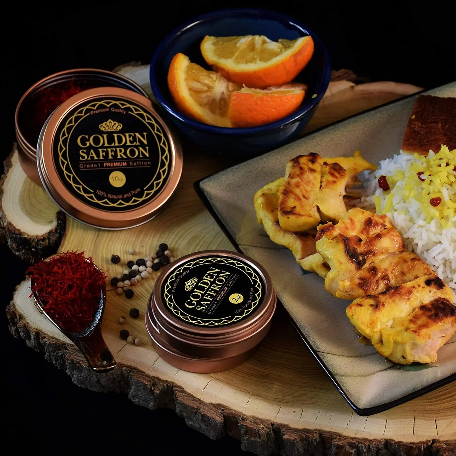 Our SUPER NEGIN Grade Saffron. 100% Pure, and Fresh Threads in Standard Food-Safe Tin Packages. Hand-picked Saffron Comes Directly from Farms. Golden Saffron is the real taste of saffron with no impurities, additives, MSG, or toxins