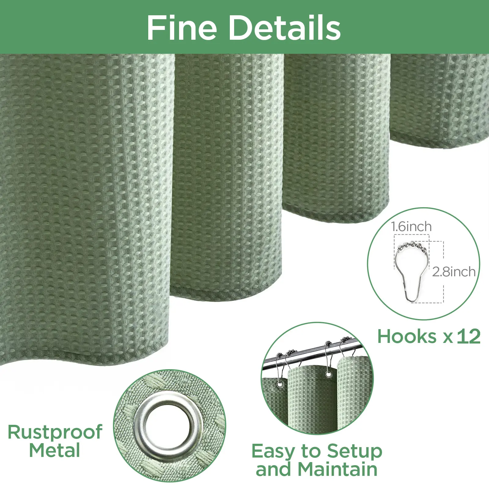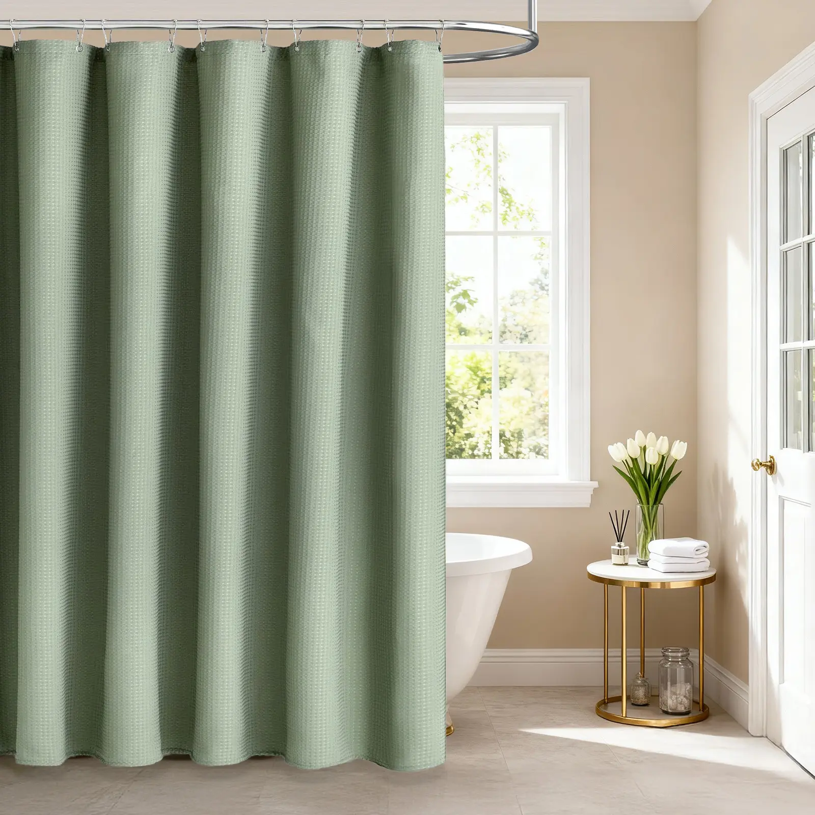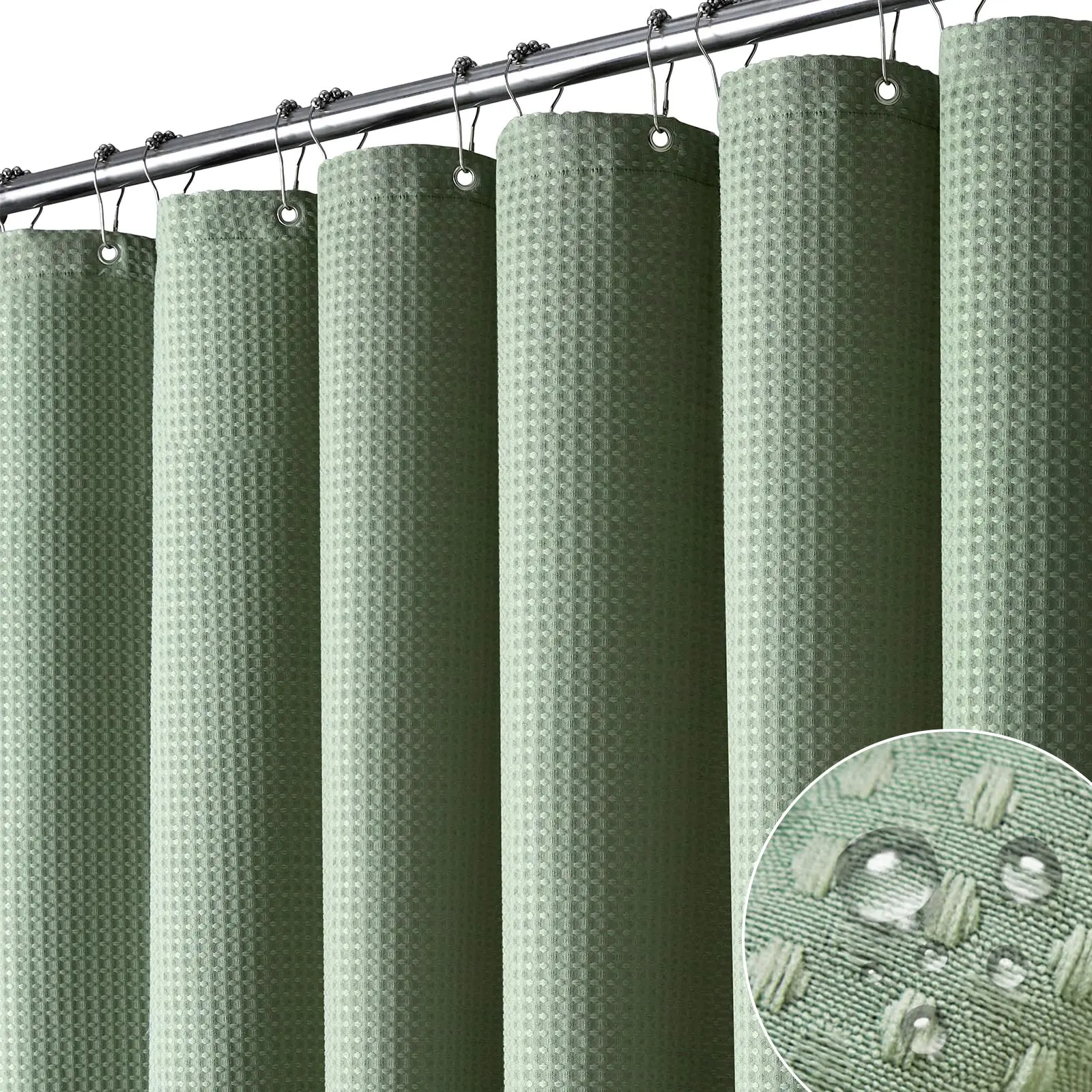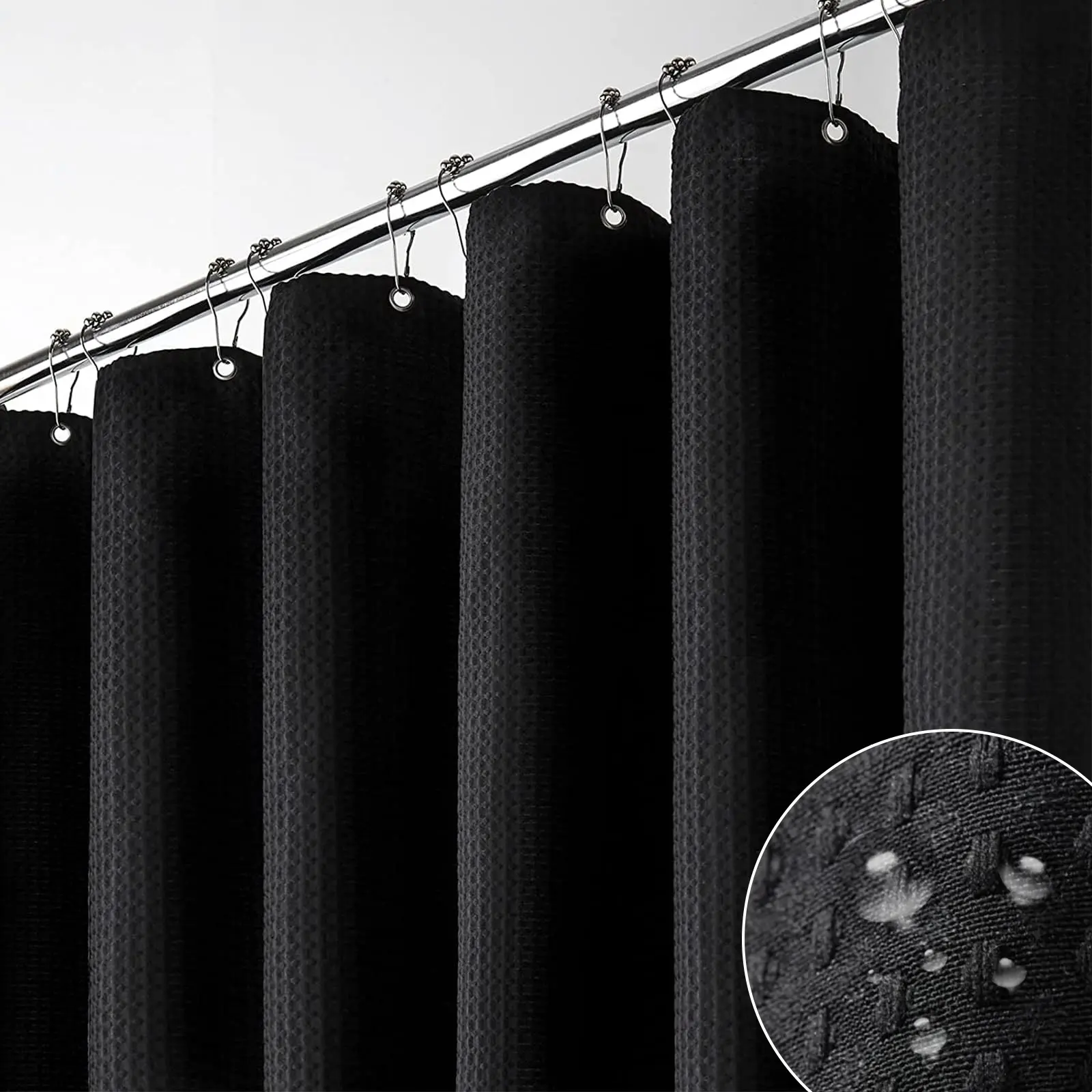 【"Cotton" Type Fabric Shower Curtain】Made from expertly chosen and tested Heavyweight Polyester Fabric, touches like a cotton feel. Honeycomb waffle weave pattern adds elegance to your bathroom.