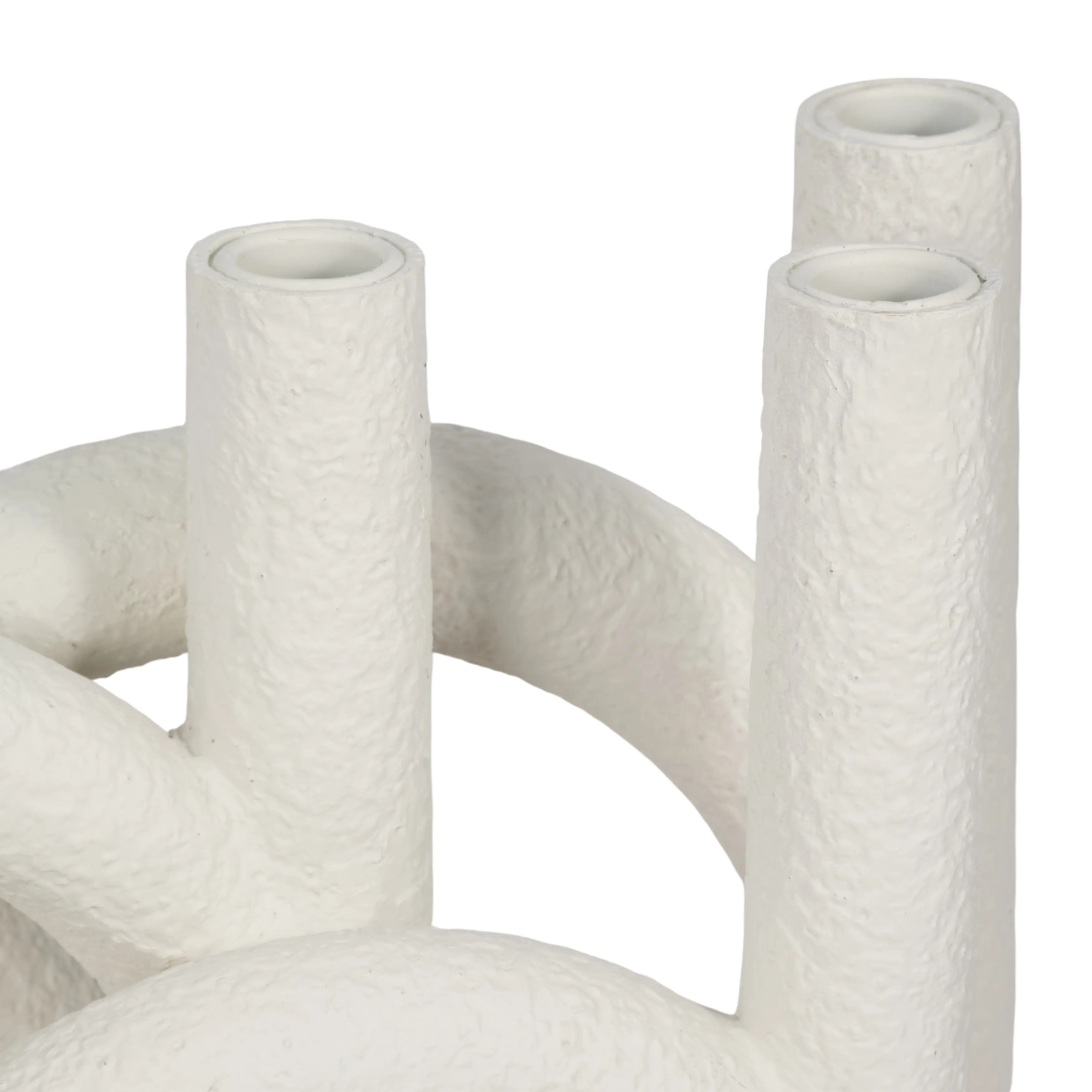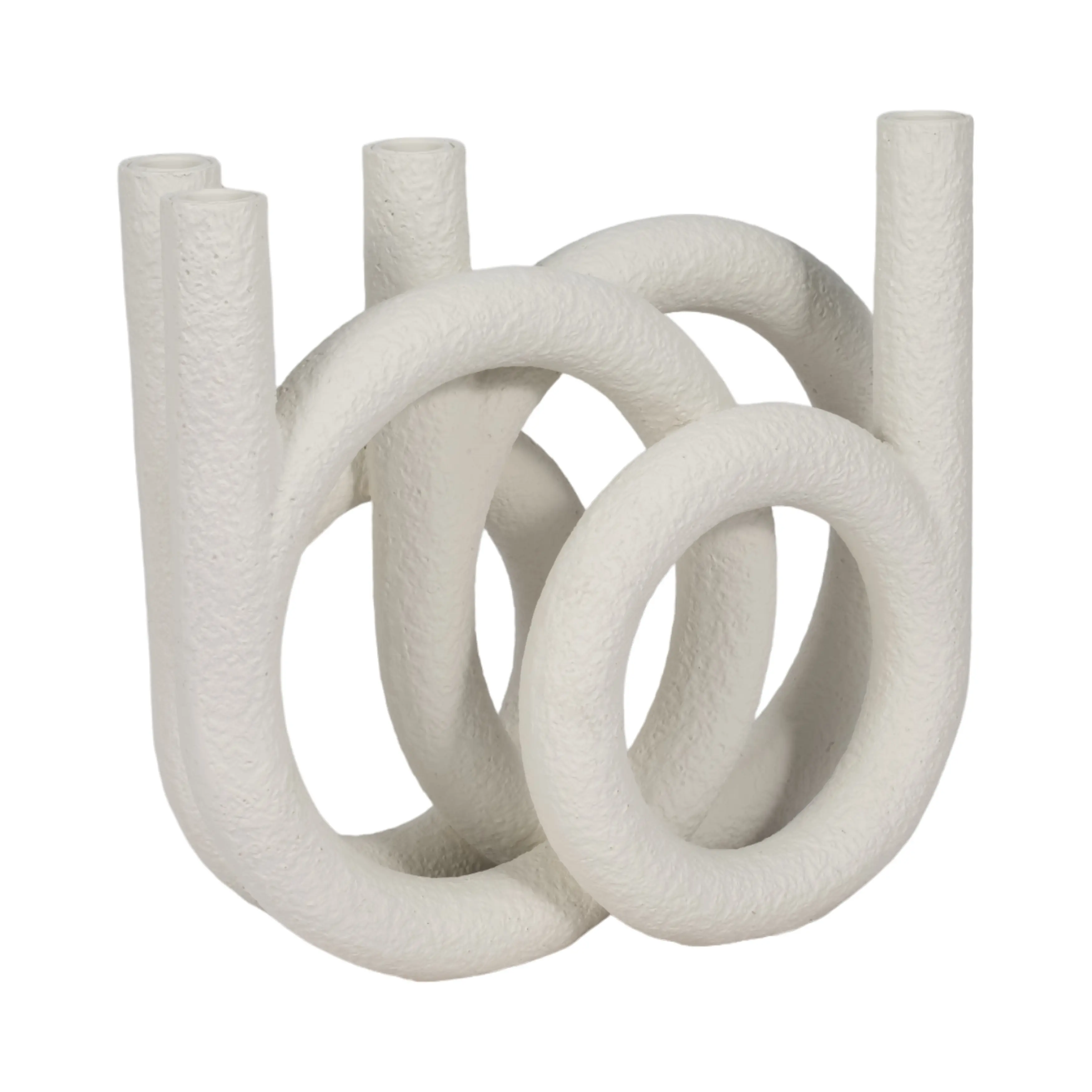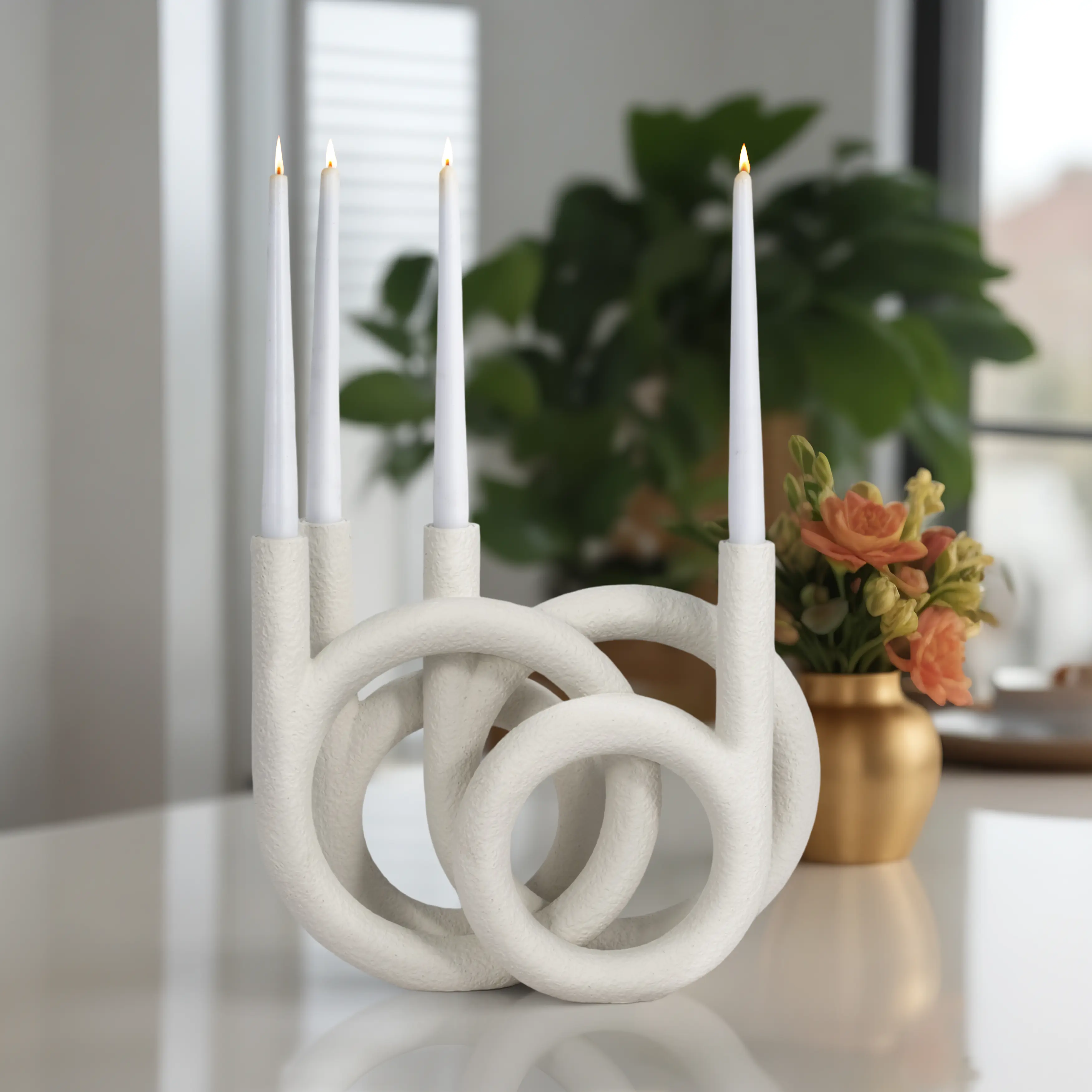 ·Revitalize your mantelpiece or tabletop with this unique white candleholder, offering a captivating looped design that stands as a modern decor statement.