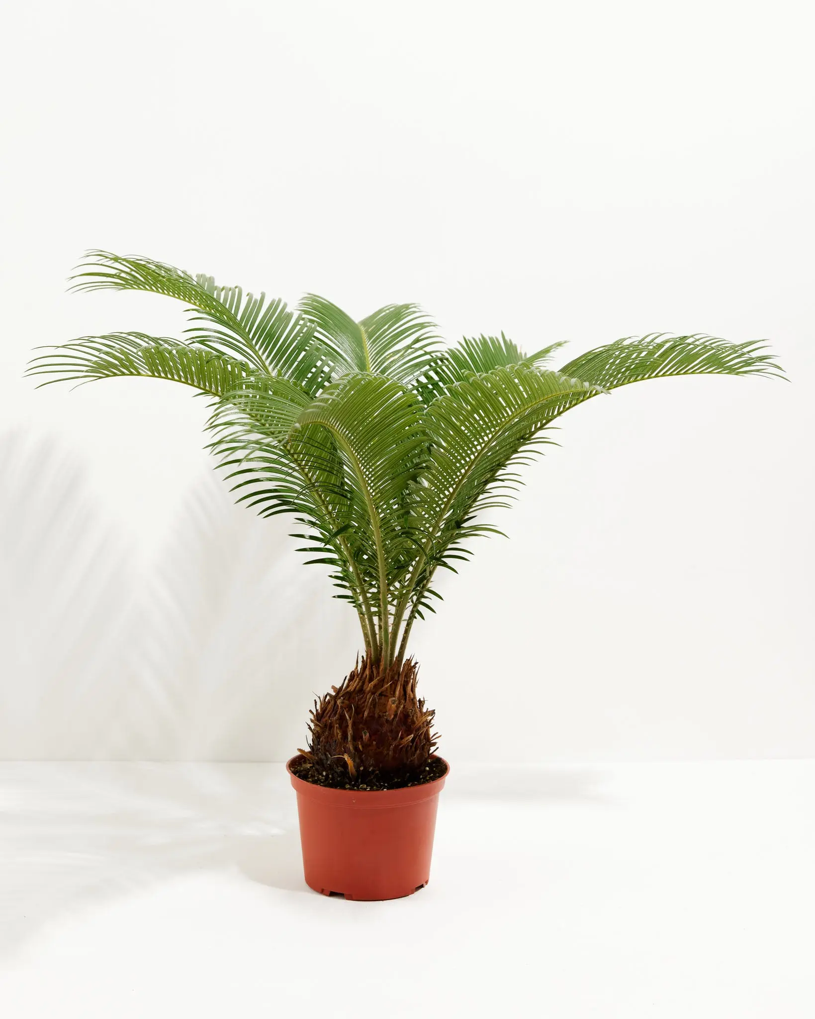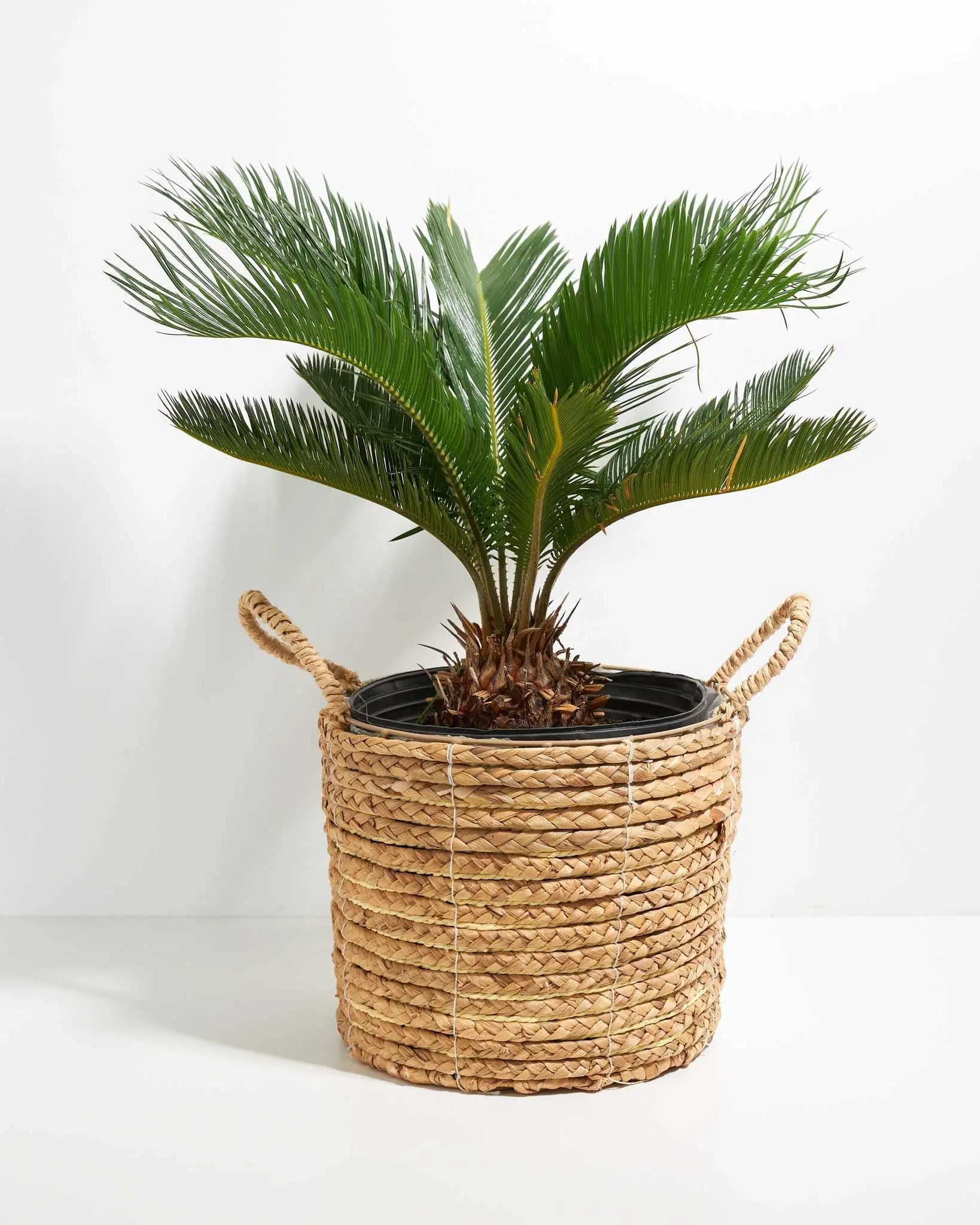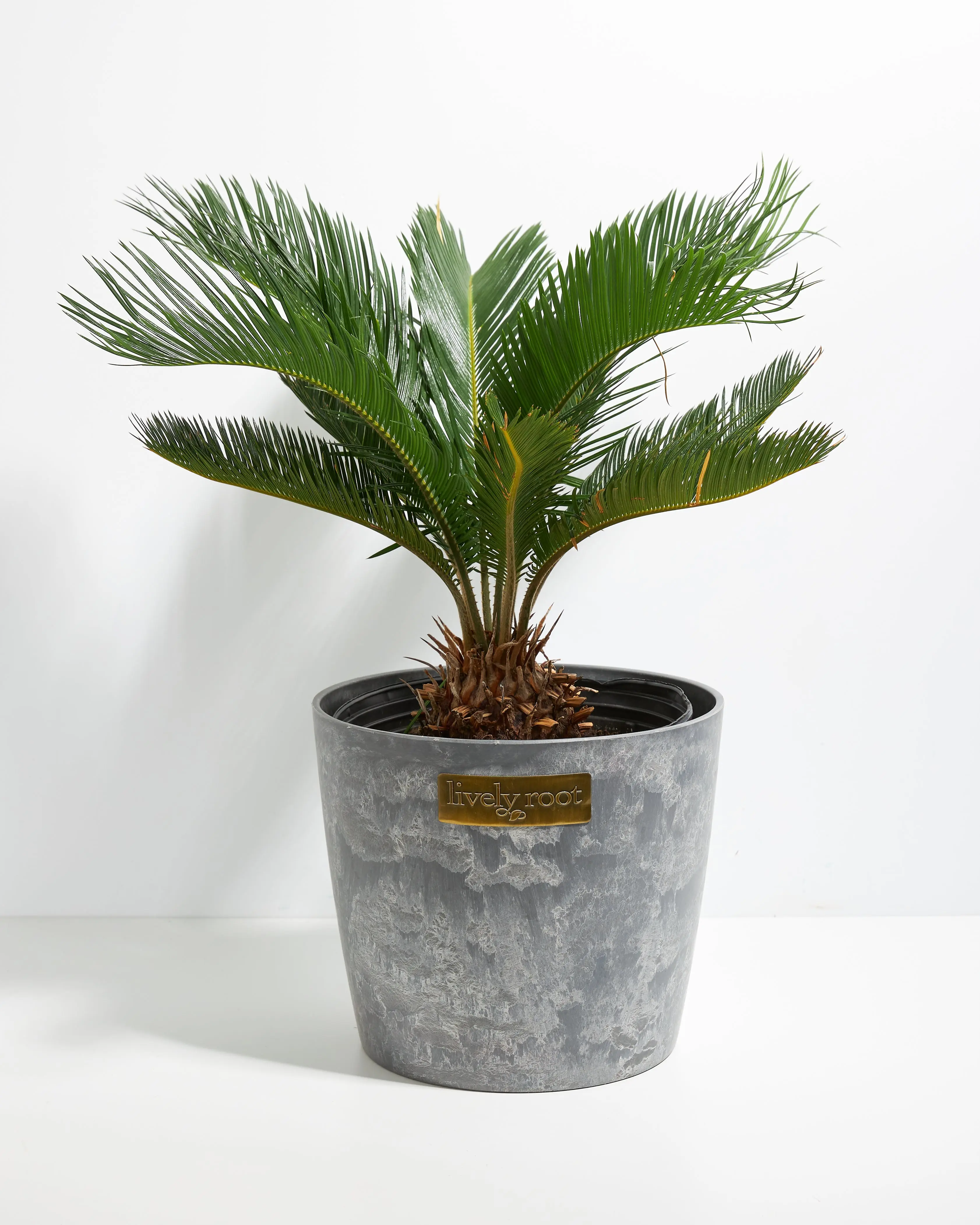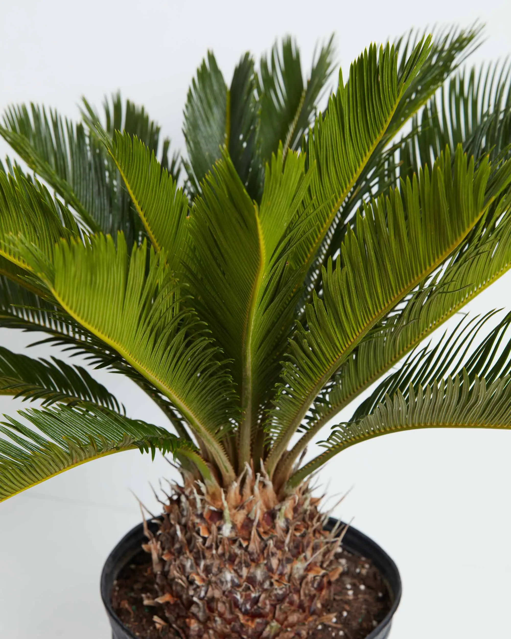 One of our favorite patio plants, the Sago Palm (Cycas revoluta), instantly brings a touch of the tropics to your outdoor space. This hardy little beauty is ideal for beginners. The Sago Palm Tree has a tough, textured trunk and shiny green leaves. Keep it in a bright spot, and they'll thrive. It can also be kept inside and has a reputation as a great air purifier.