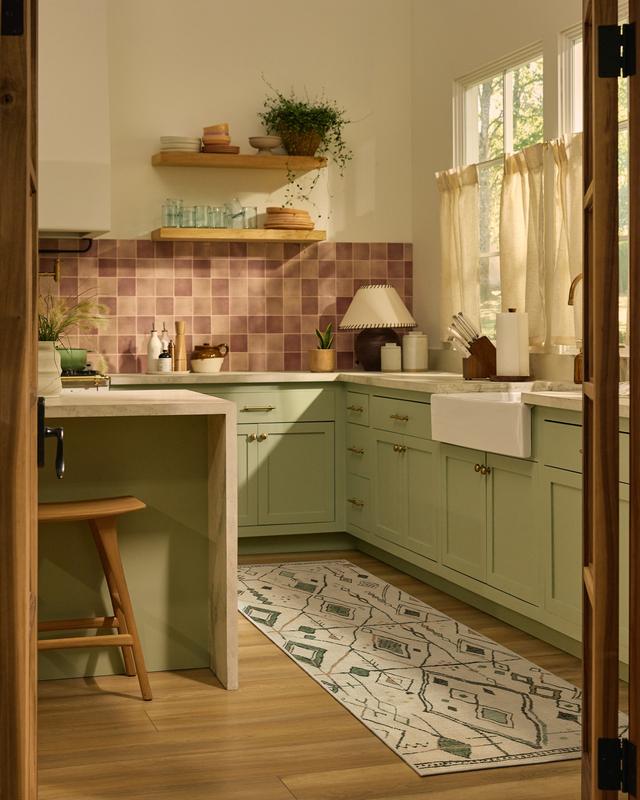 Whether resting or unwinding, the Saguaro Trail Cream & Sage Rug offers an easy way to reground. It features Moroccan-inspired diamond motifs with a hand-drawn, time-worn look. Cool ivory is paired with soft sages, neutral brown, and accents of beige for an easy, lived-in feel. Water-resistant, stain-resistant, and fully machine-washable. Colors may vary by device and lighting.