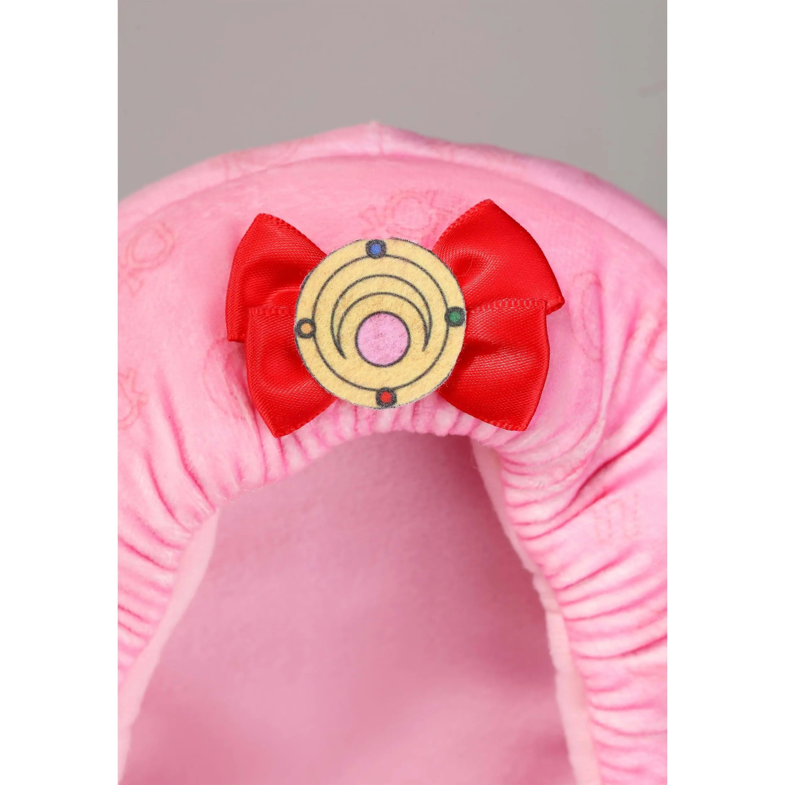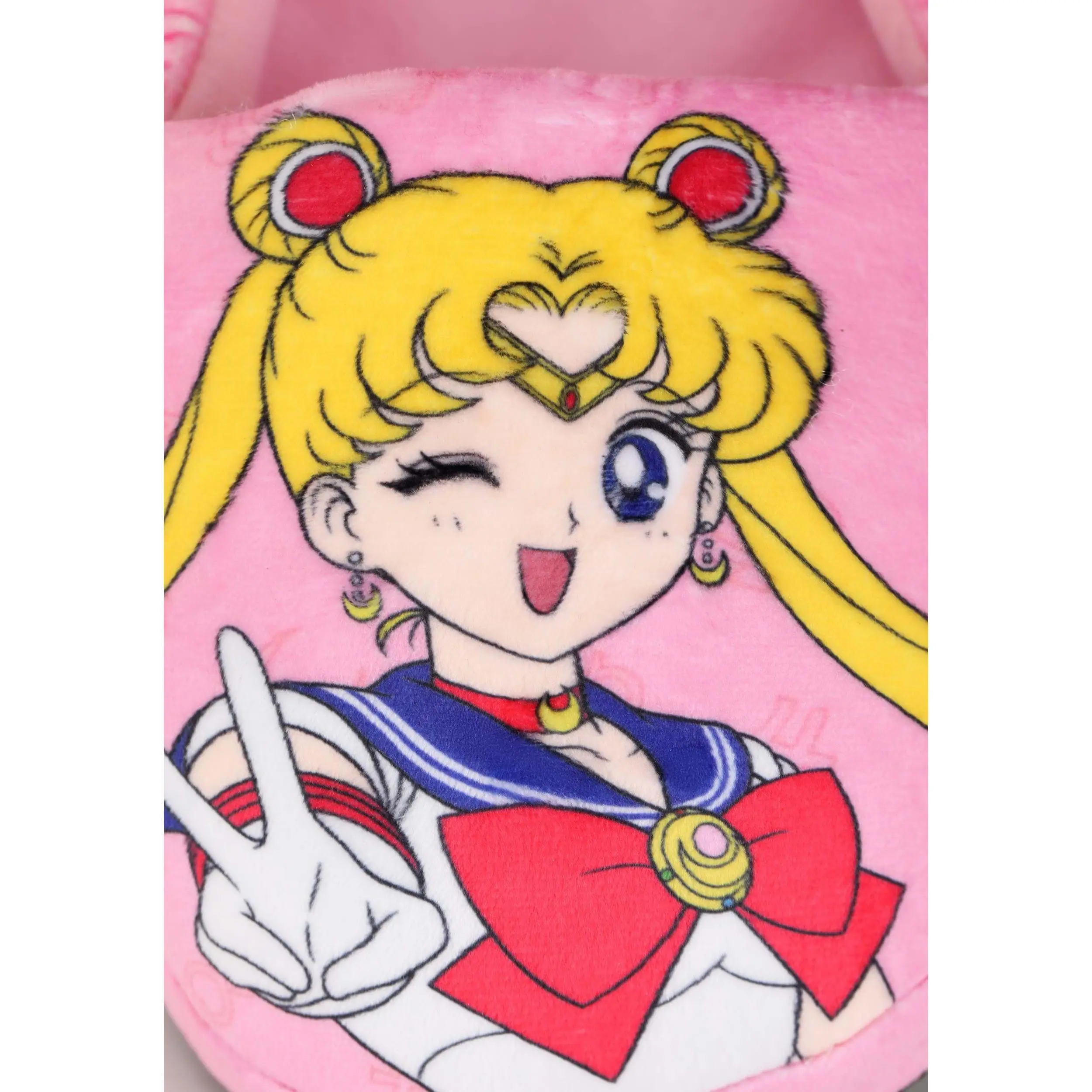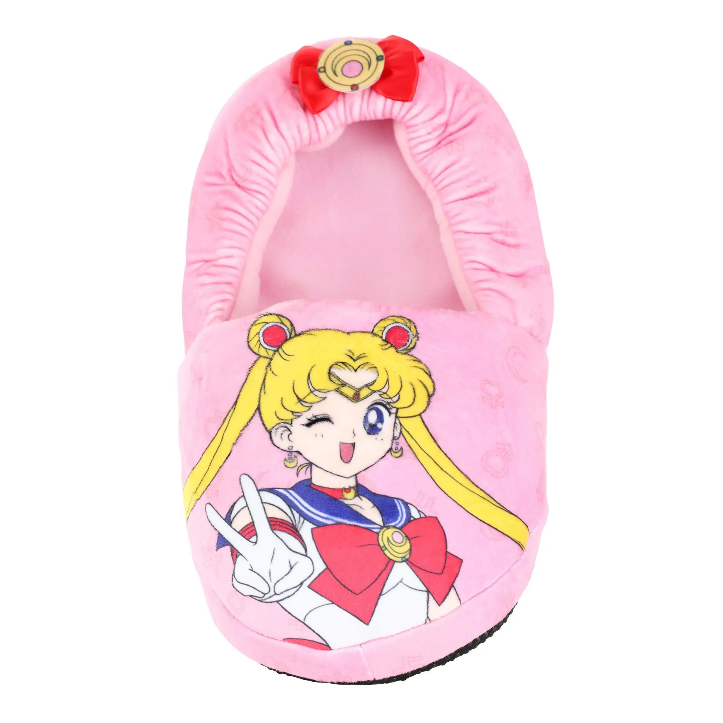Each slipper features a subtle all-over print graphic highlighting Sailor Moon's symbol. The toes also feature a detailed illustration of the guardian, and the backs of each slipper secure a 3D bow made to match Sailor Moon's signature uniform.