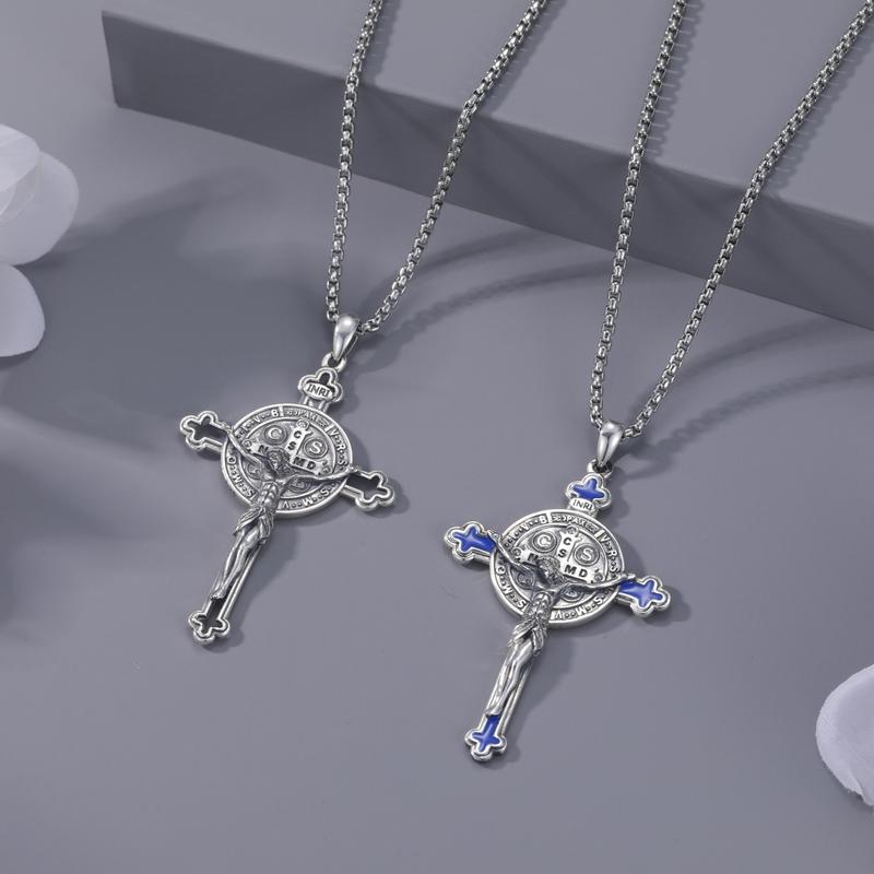 DRINSPER Saint Benedict Cross Necklace for Men & Women — 925 Sterling Silver Pardon Crucifix Pendant, Catholic Religious Jewelry for Daily Protection
