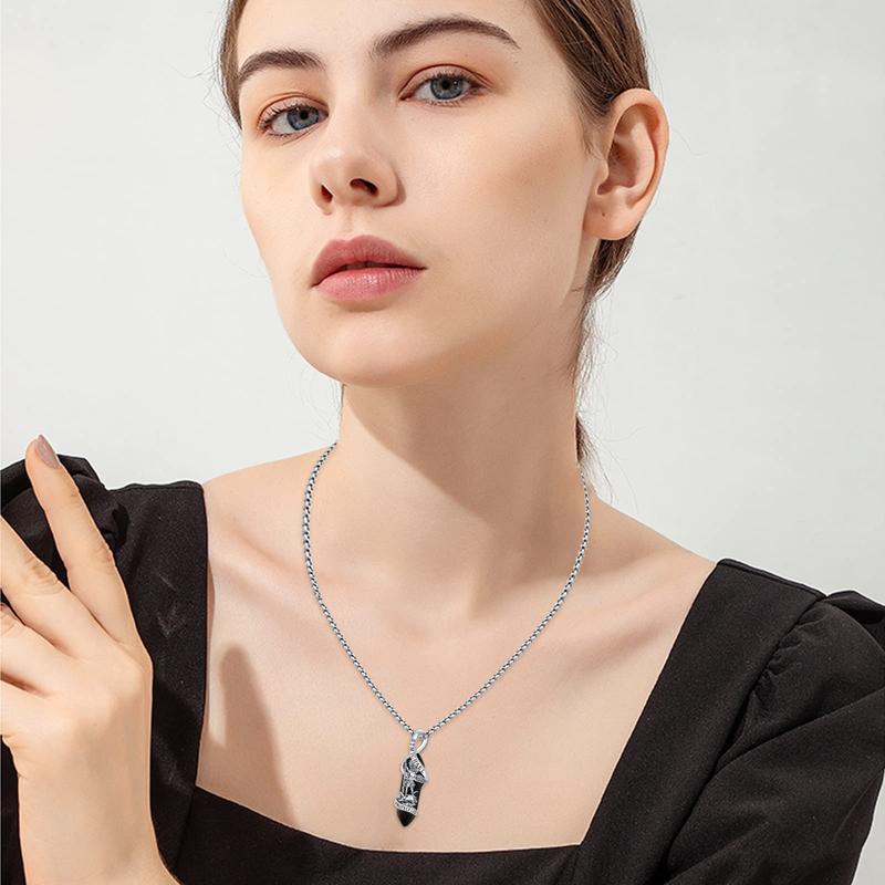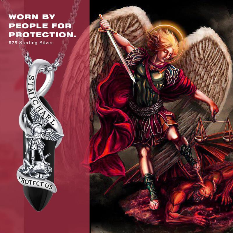 Celebrate your faith with the Saint Michael Necklace, a meaningful and stylish accessory that honors the archangel, a protector, justice champion, and healer.This necklace features a striking design with Saint Michael holding a sword over the devil and a black healing crystal for energy balance.