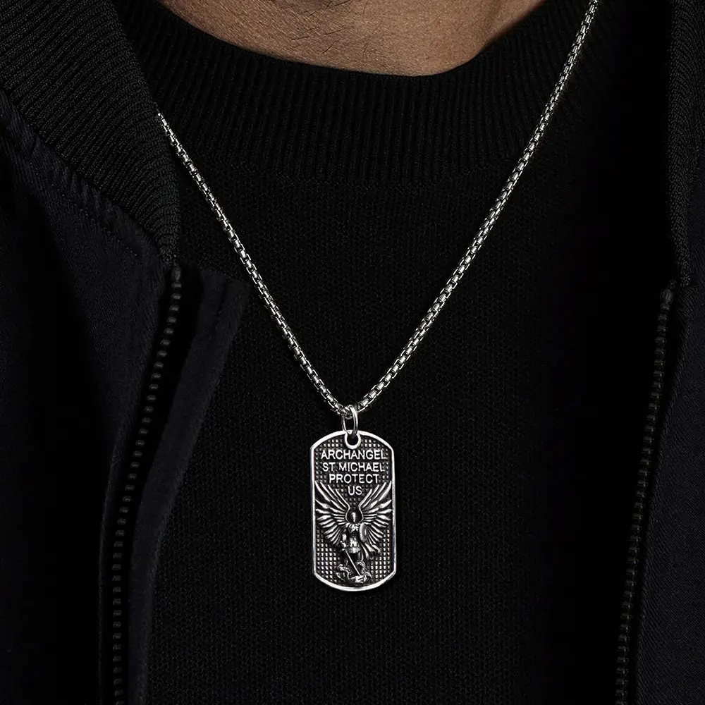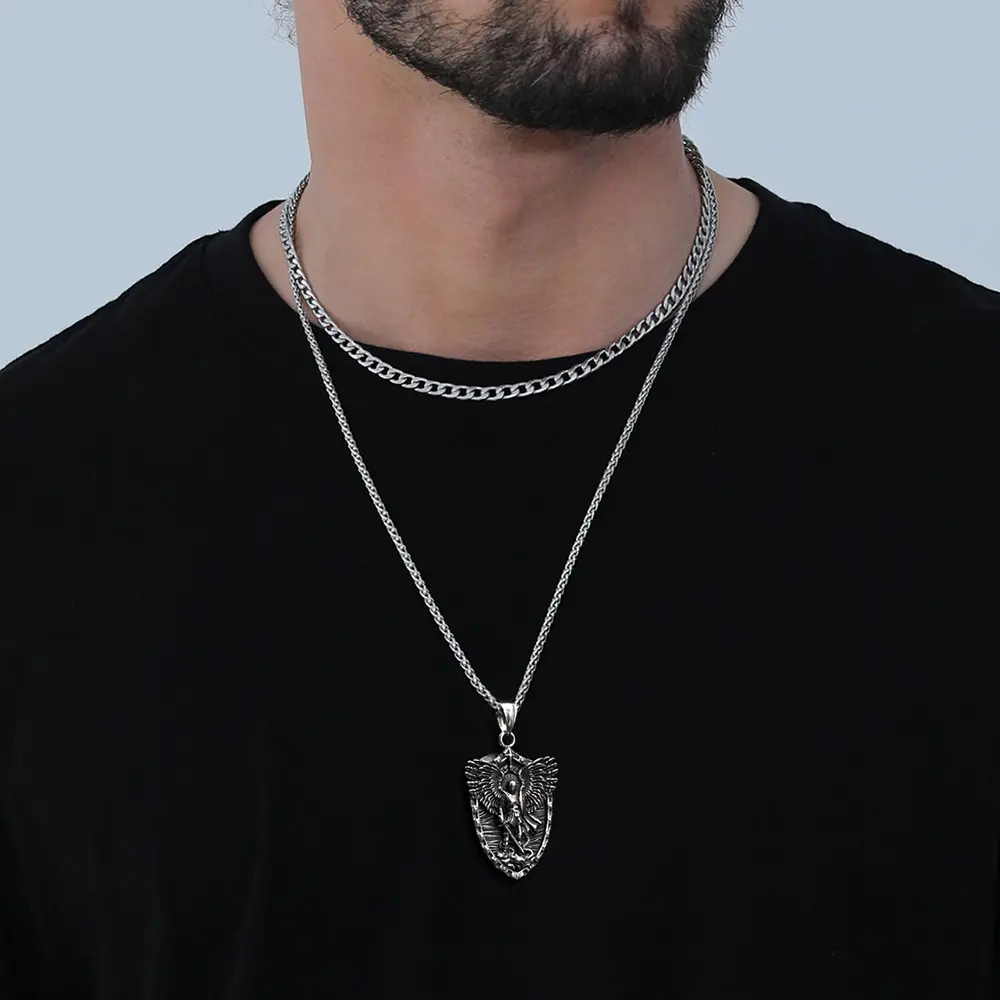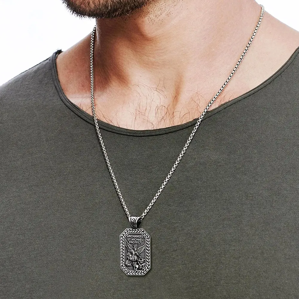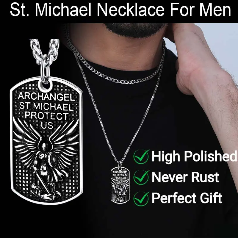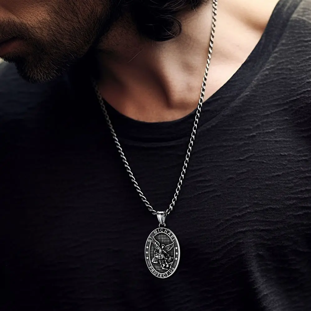 FaithHeart Saint Michael the Archangel Necklace Amulet Stainless Steel Father's day gift Jewelry For Men