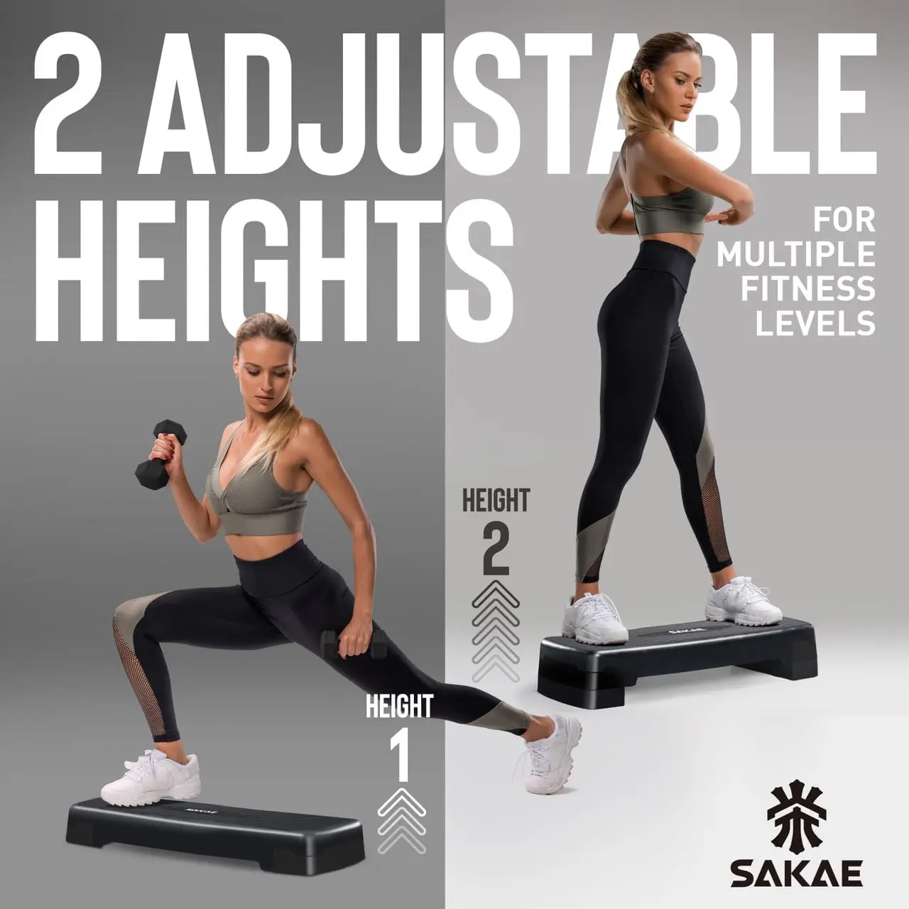 SAKAE Exercise Step Platform Set with Ankle Weights & Measuring Tape, Adjustable Height 2 Level Risers Workout Step Trainer, Aerobic Steppers for Home Gym Exercise Fitness Workout, Multiple Colors