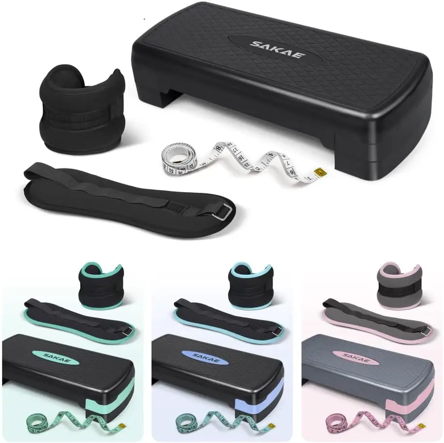Multi-Purpose Workout Set: Aerobic step platform improves endurance and increases calorie burn; ankle weights add resistance to strengthen legs and glutes; includes measuring tape to track progress and support your fitness goals at home or the gym