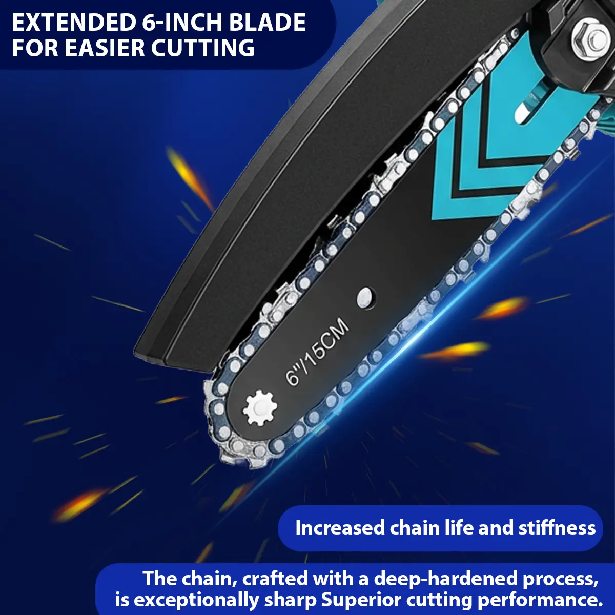 ·Upgraded Copper Wire High-Efficiency Motor: Provides longer run-time, more torque, and power, reducing wear and tear and extending the lifespan of the mini chainsaw.