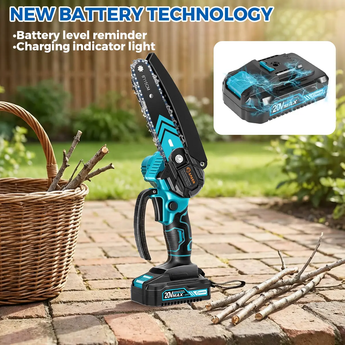 ·Rechargeable Electric Chainsaw: Features a 20V 1500mAh rechargeable lithium battery for extended use. Charging is convenient and fast. Fully charge the battery if not used for a long time for a better experience.