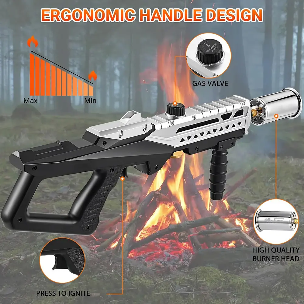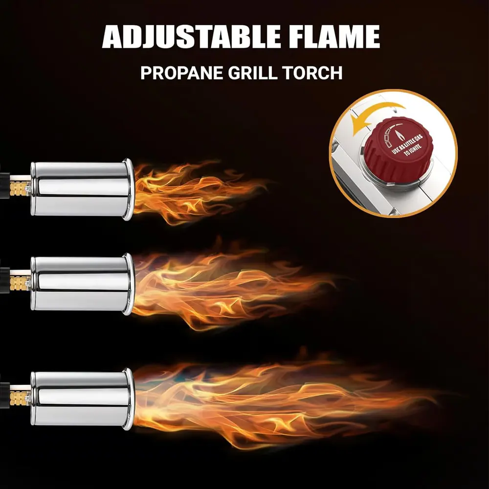 ·Precise Flame Adjustment: This Charcoal Torch Lighter equipped with a flame adjustment knob at the top, allows precise flame size control to suit your needs. The flame offers a wider range of adjustment, it effortlessly handles tasks like cooking, lighting charcoal, or manual welding.