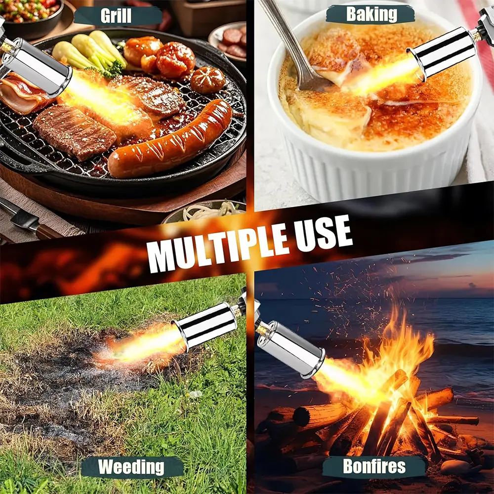 ·Multiple Applications: This versatile torch is ideal for searing steaks, outdoor grilling, preparing desserts, melting cheese, and toasting breadcrumbs. It also ignites charcoal grills, campfires, and fireplaces for outdoor camping, while supporting various craft projects and precision welding—making it an exceptionally cost-effective tool.