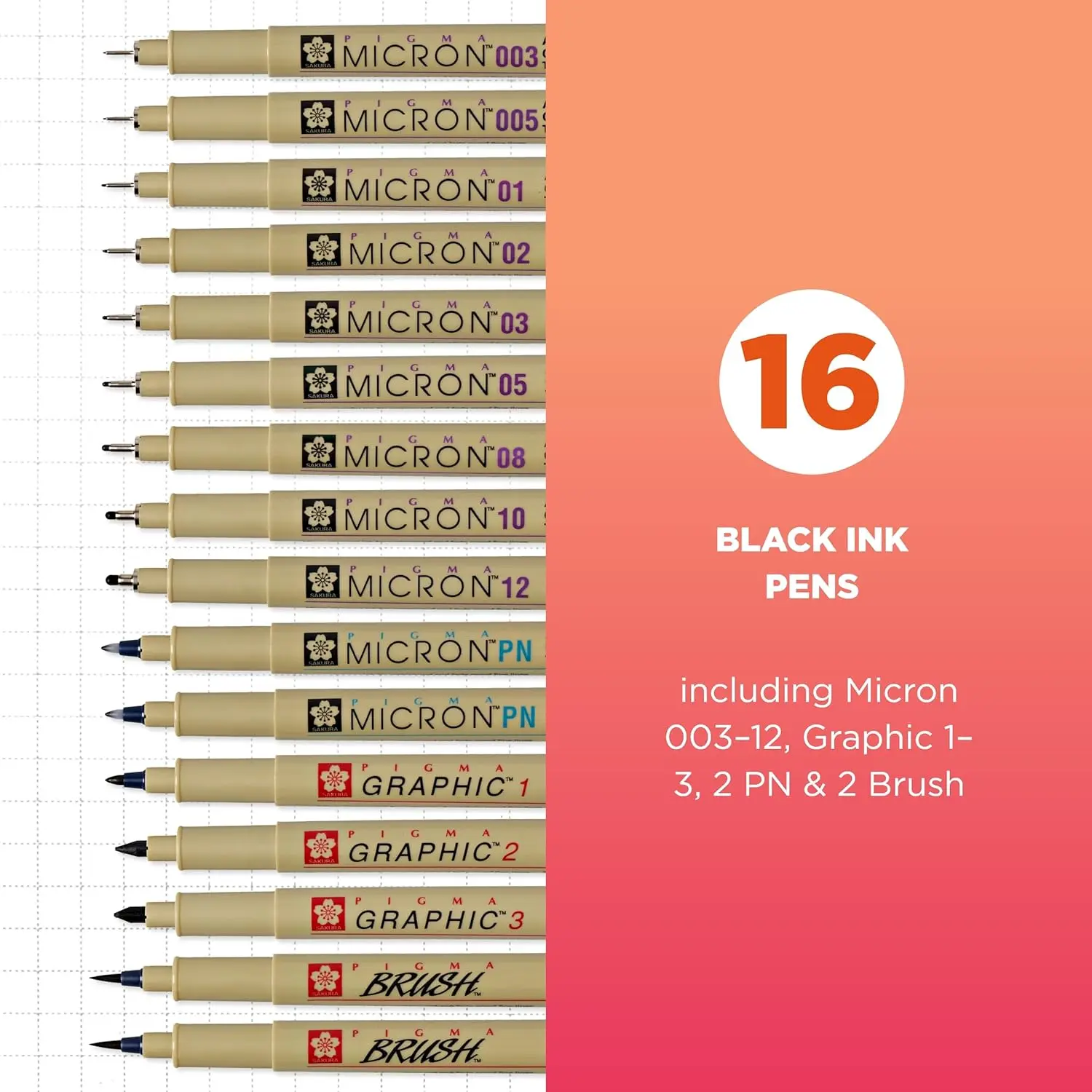 Great variety of sizes — great for illustration, lettering etc. pigmented ink nice and black. I do wish the 2mm was a bullet tip and not chisel but for the price that’s a small complaint