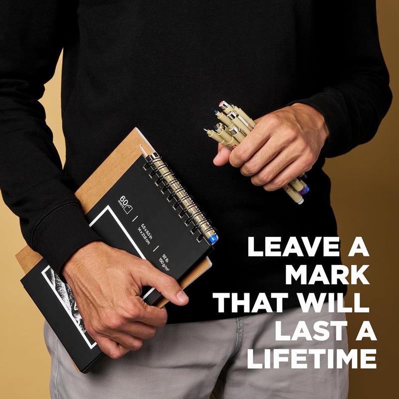·Includes 6 black ink Pigma Micron pens in point sizes 005 (0.20mm), 01 (0.25mm), 02 (0.30mm), 03 (0.35mm), 05 (0.45mm), and 08 (0.50mm)