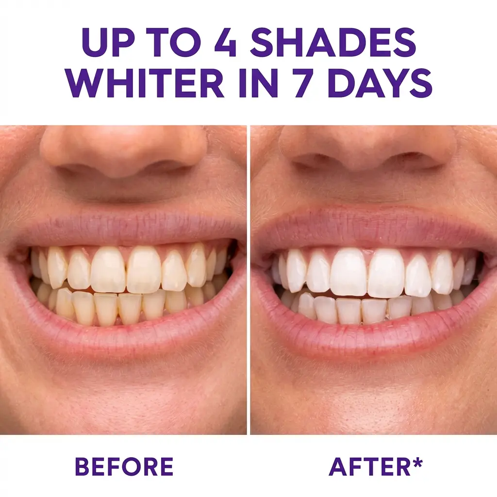 ·INSTANT BRIGHTENING WITH PURPLE COLOR-CORRECTING TECHNOLOGY: See your smile brighten in just 30 minutes. Inspired by color-correcting skincare, our purple tone-up formula instantly neutralizes yellow tones through optical reflection, revealing a cool, luminous white glow—no harsh bleach, no waiting.