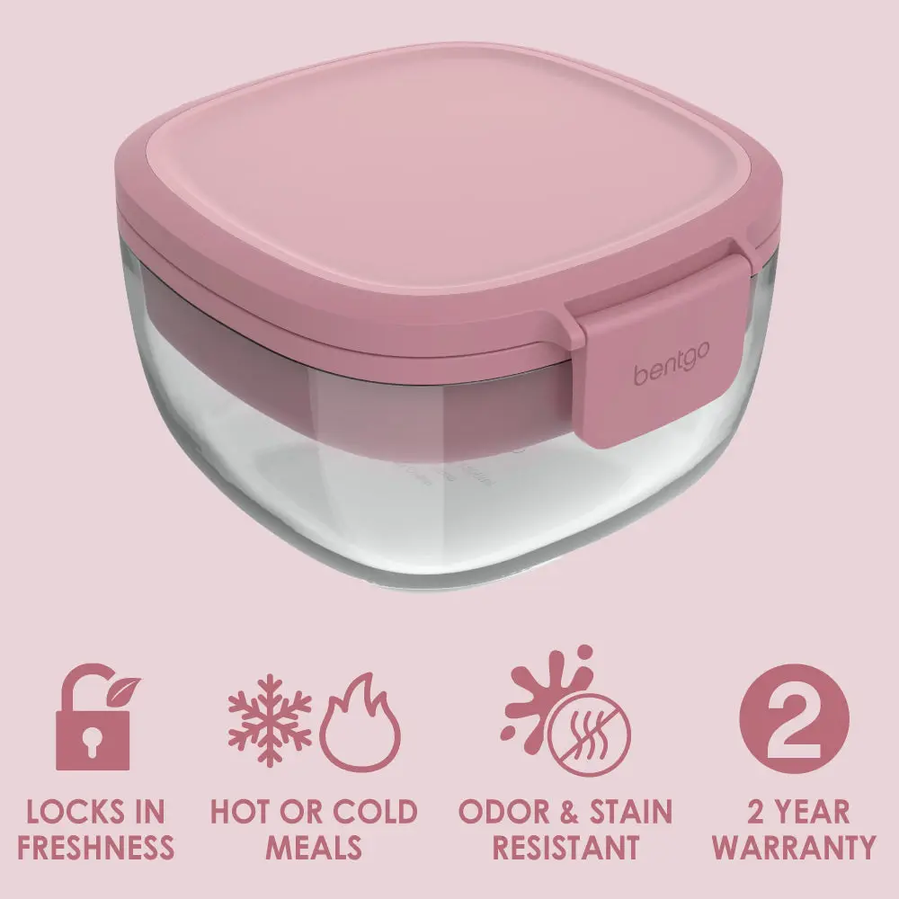 ·2-YEAR WARRANTY: Bentgo Glass Salad comes with a large 7.6-cup glass bowl, a 4-compartment bento tray for toppings, a leak-proof sauce container, a reusable fork sauce container, and an airtight lid. Plus, you get a user manual and Bentgo’s industry-leading 2-Year Warranty. Our customer support team provides quality service and peace of mind to millions worldwide, all from a brand you can trust.
