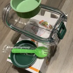 It Is Smaller Than I Thought 💭 it Was Going To be ….However There is A Little Cup At The TopOf ConTainer For Your Salad Dressing …