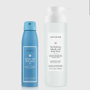 I have been using this combined with my panoxyl bar soap & ordinary mini set. My skin looks & feels amazing. The body wash is unscented and you really only need 1 or 2 pumps. It lathers well. The spray I use in targeted areas & it dries quickly. 10/10