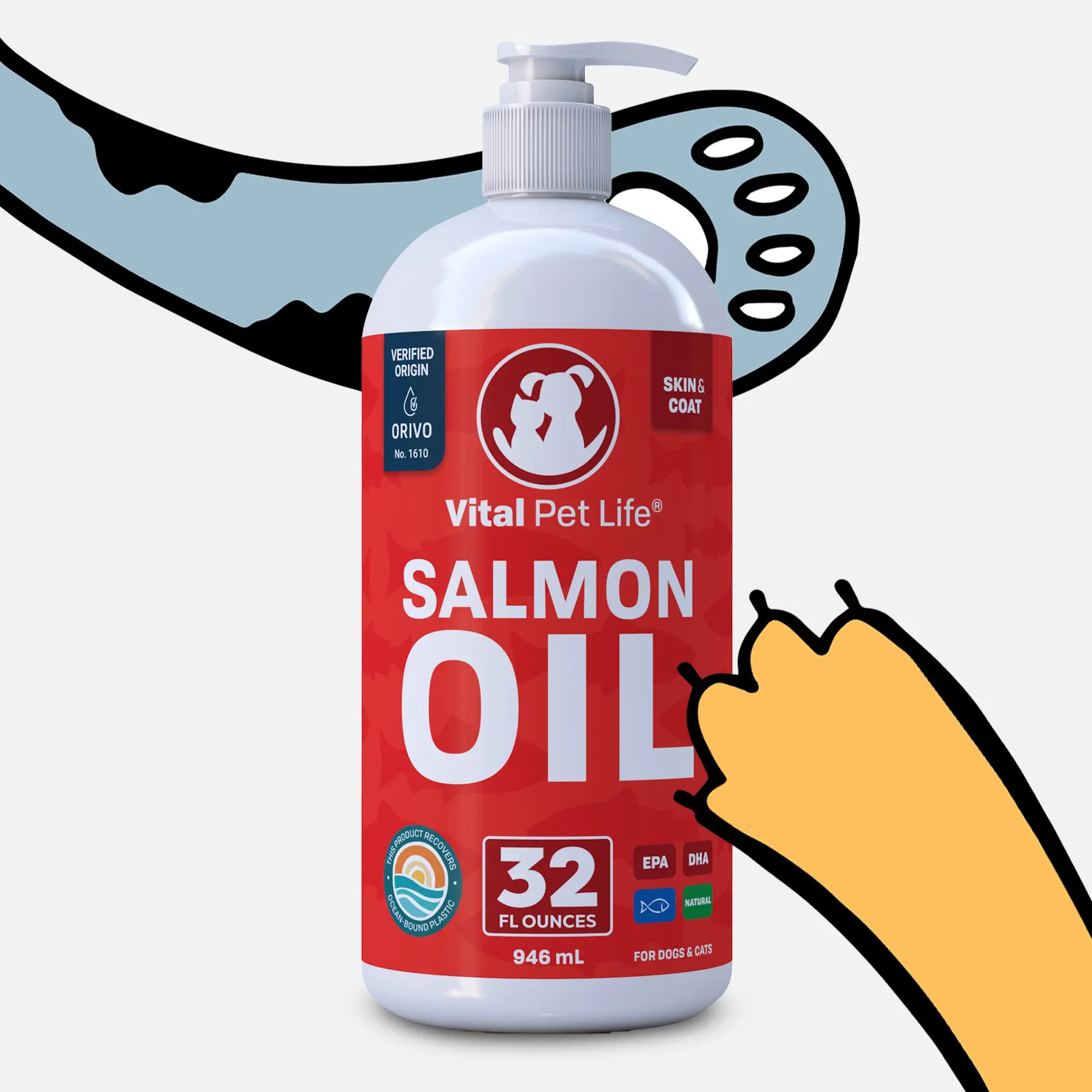We started giving Lodus the Salmon oil a few weeks ago. The pump bottle is great! Hopefully it helps with his bad hip and joints. His coat already is getting softer. Will give an update in a few more weeks.