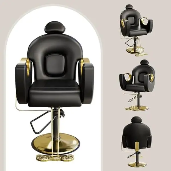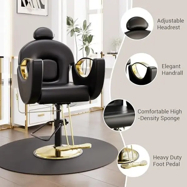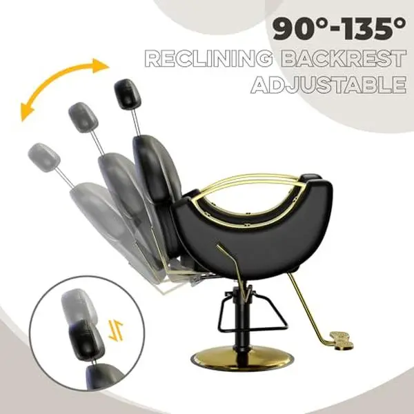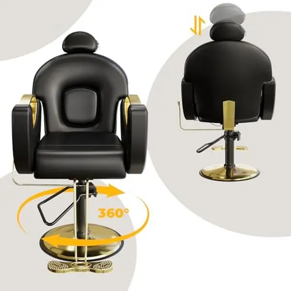 【Professional, Intuitive Adjustability】 Enjoy salon-grade control with this hair salon chair. The hydraulic lever allows smooth reclining, a 360°swivel for precision work, and easy height adjustment. The detachable headrest ensures a perfect fit for every client.