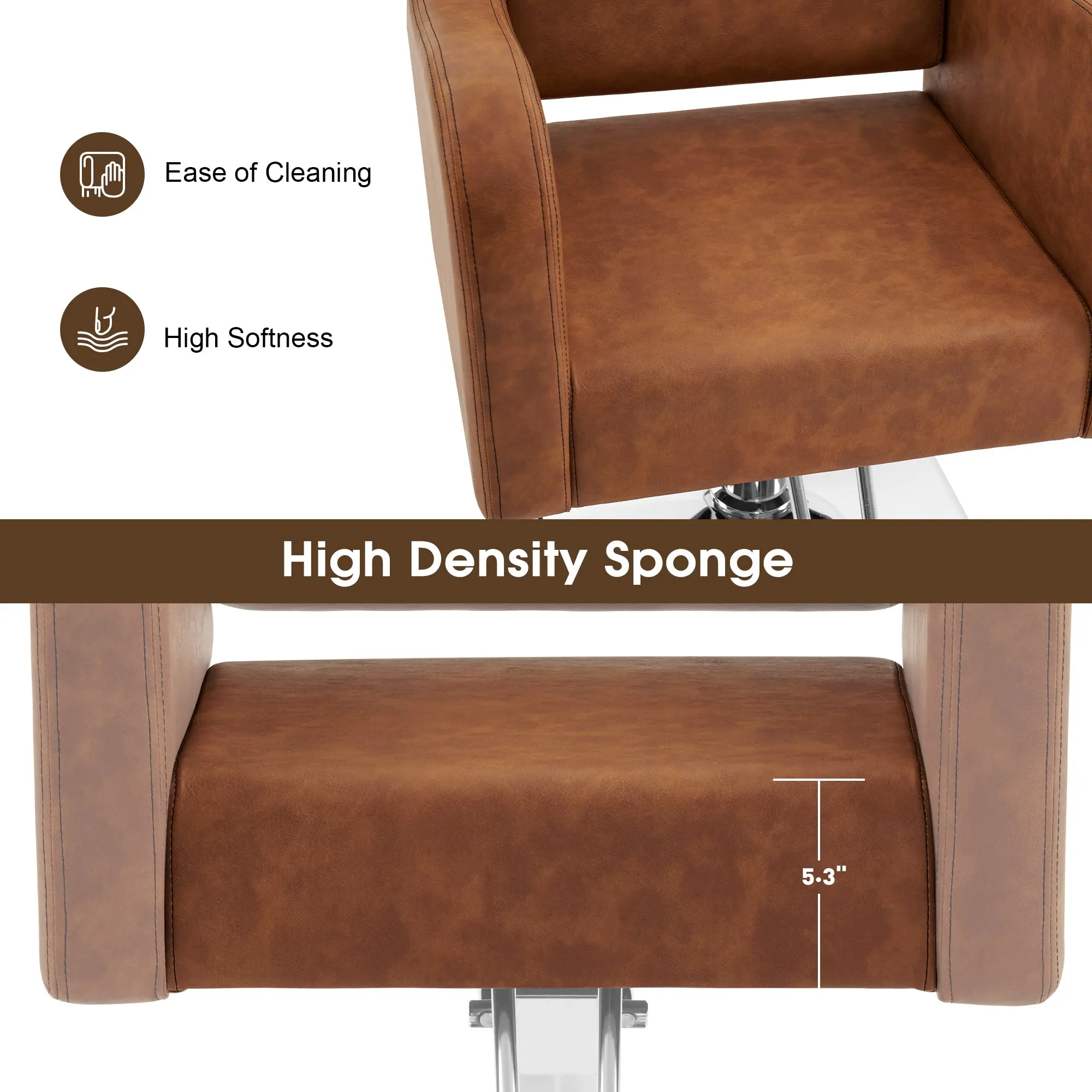 ·Comfortable & Durable: The 4.3" thick high-elastic sponges cushion make the chair more comfortable and relaxing. The seat with the width of 19.7" will perfectly fit most clients, the seat height is adjustable which is beneficial to satisfy most hair stylists.