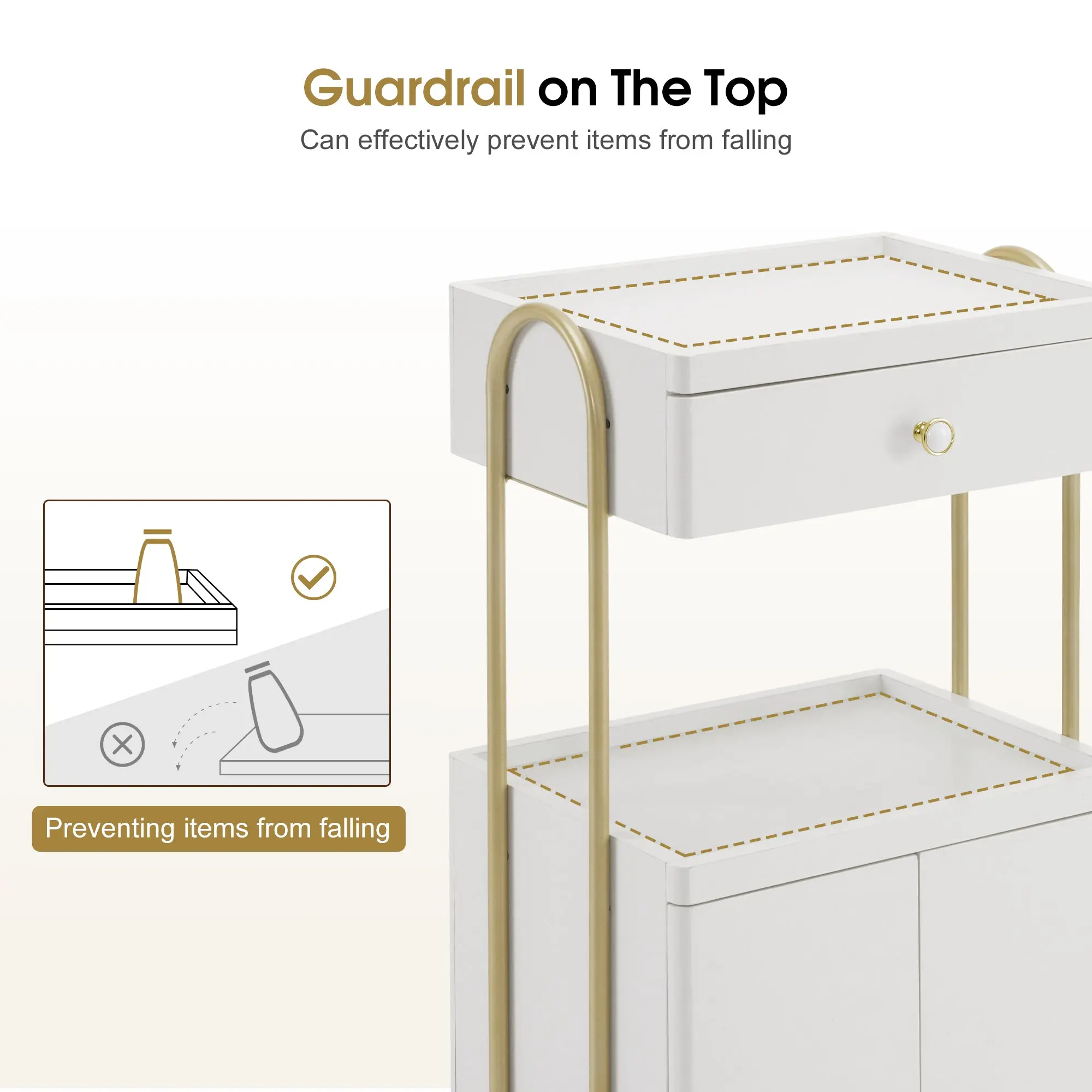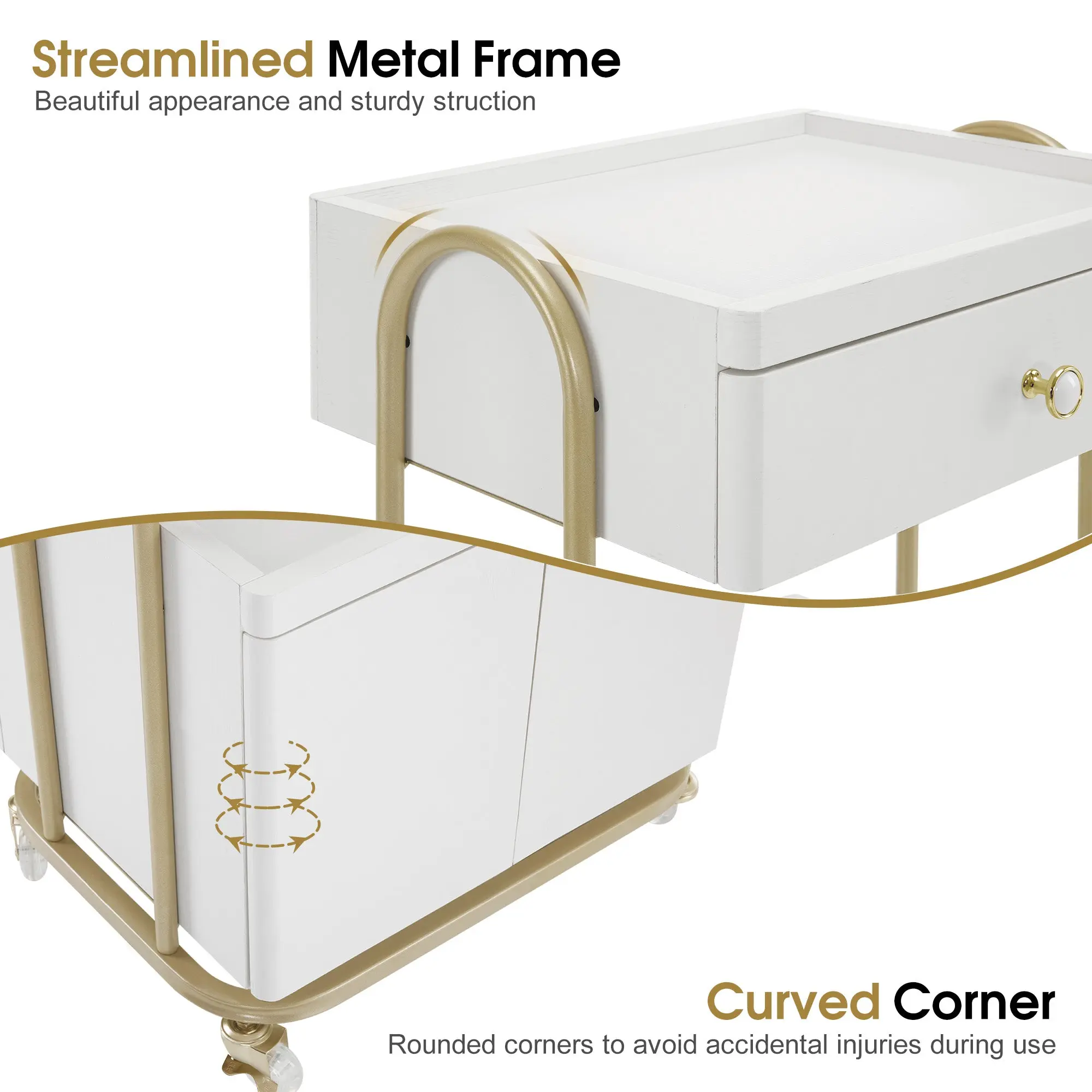 [Curved Corner]: The beauty cart features rounded corners which are designed to minimizes the risk of accidental injuries during use. It is safe and nice-looking for your daily use.