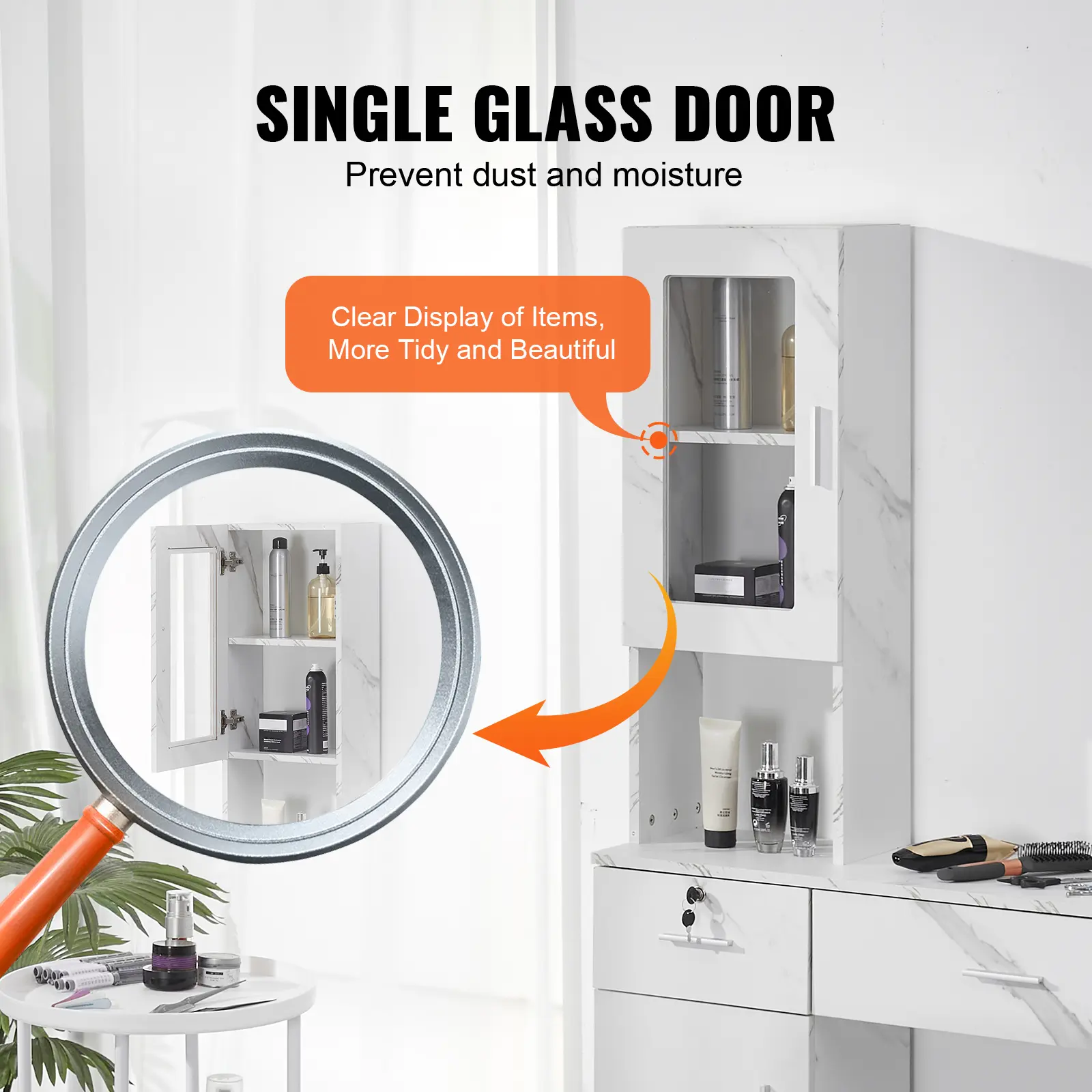 • Security & Privacy Protection: The glass cabinet door design prevents dust and get wet, maintaining cleanliness and enhancing overall aesthetics. Barber hair styling station is equipped with a lockable drawer for storing valuables securely.