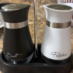 Why would you want a salt shaker that is black and a pepper shaker that is white? I wish I would have seen the words on the shakers before I purchased them. Pepper/black and salt/white yes. Not the other way around. Only good for a gag gift!