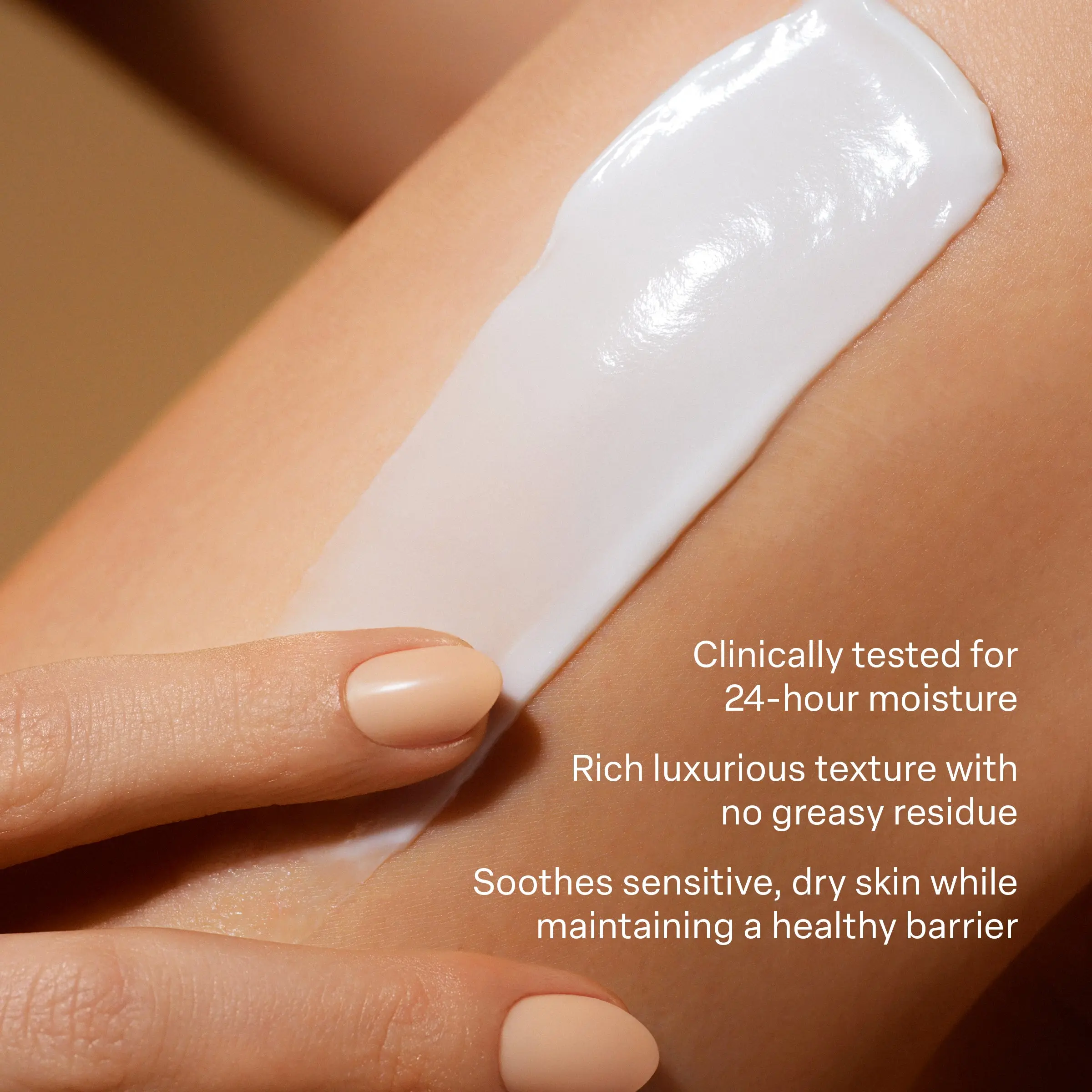 | Ingredients | Water (Aqua), Cocos Nucifera (Coconut) Oil, Caprylic/Capric Triglyceride, Glycerin, Octyldodecyl Myristate, Cetyl Alcohol, Dimethicone, Fragrance (Parfum), Glyceryl Stearate, Behenyl Behenate, Behenyl Alcohol, Phospholipids, Phytosterols, Simmondsia Chinensis (Jojoba) Seed Oil, Vitis Vinifera (Grape) Seed Oil, Hippophae Rhamnoides Fruit Oil, Hydrogenated Lecithin, Ceramide NP, Ceramide AS, Ceramide NS, Ceramide EOP, Ceramide AP, Ascorbic Acid, Tocopheryl Acetate, Tocopherol, Polyacrylate Crosspolymer-6, Polyhydroxystearic Acid, Polyglyceryl-10 Stearate, Sodium Stearoyl Lactylate, Euphorbia Cerifera (Candelilla) Wax, Linoleic Acid, Phenoxyethanol, Ethylhexylglycerin, Benzyl Salicylate, Citrus Aurantium Peel Oil, Coumarin, Geranyl Acetate, Hydroxycitronellal, Limonene, Linalool, Pinene, Tetramethyl Acetyloctahydronaphthalenes, Vanillin |