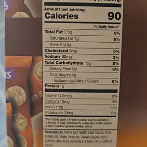 IngredientsSea Salt,Brown Sugar,Sunflower Oil,Caramel Color,Natural Flavors,Palm Kernel Oil,Sugar,Salt,Whole Quinoa,Chia,Flax,White Rice