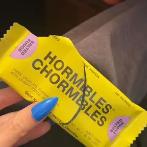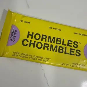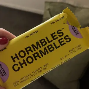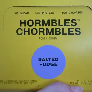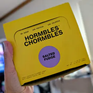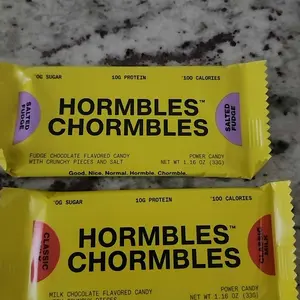 Hormbles Chormbles Salted Fudge Protein Candy Bars offer 10g protein, 0g sugar, and 140 calories. The rich, fudgy flavor is somewhere between a milk chocolate and dark chocolate. Filled with crunch and salt for extra indulgence. From the founders of RXBAR, these are not boring protein bars but deliciously nostalgic candy.