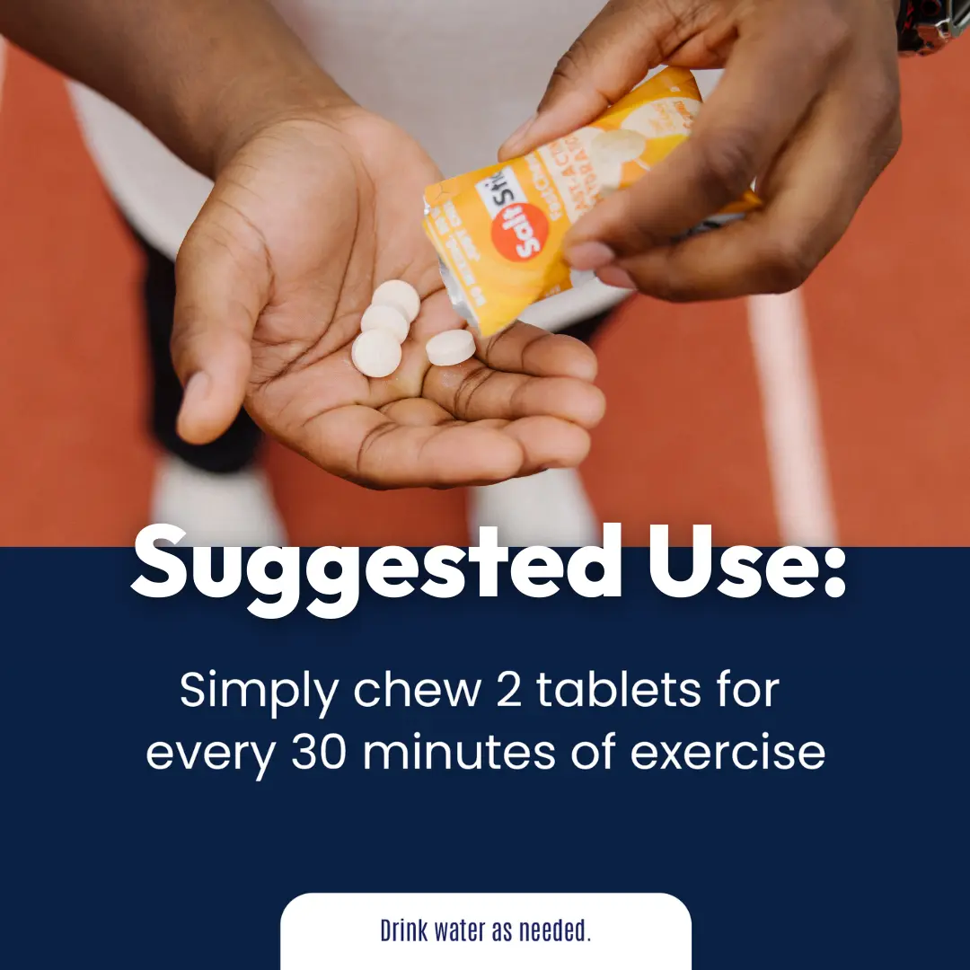 SaltStick Chewable Electrolyte Tablets offer quick hydration during workouts, on hot days, or after a night out. Each tablet provides a balanced blend of sodium, potassium, magnesium, and calcium. Perfect for maintaining energy and performance. ️️