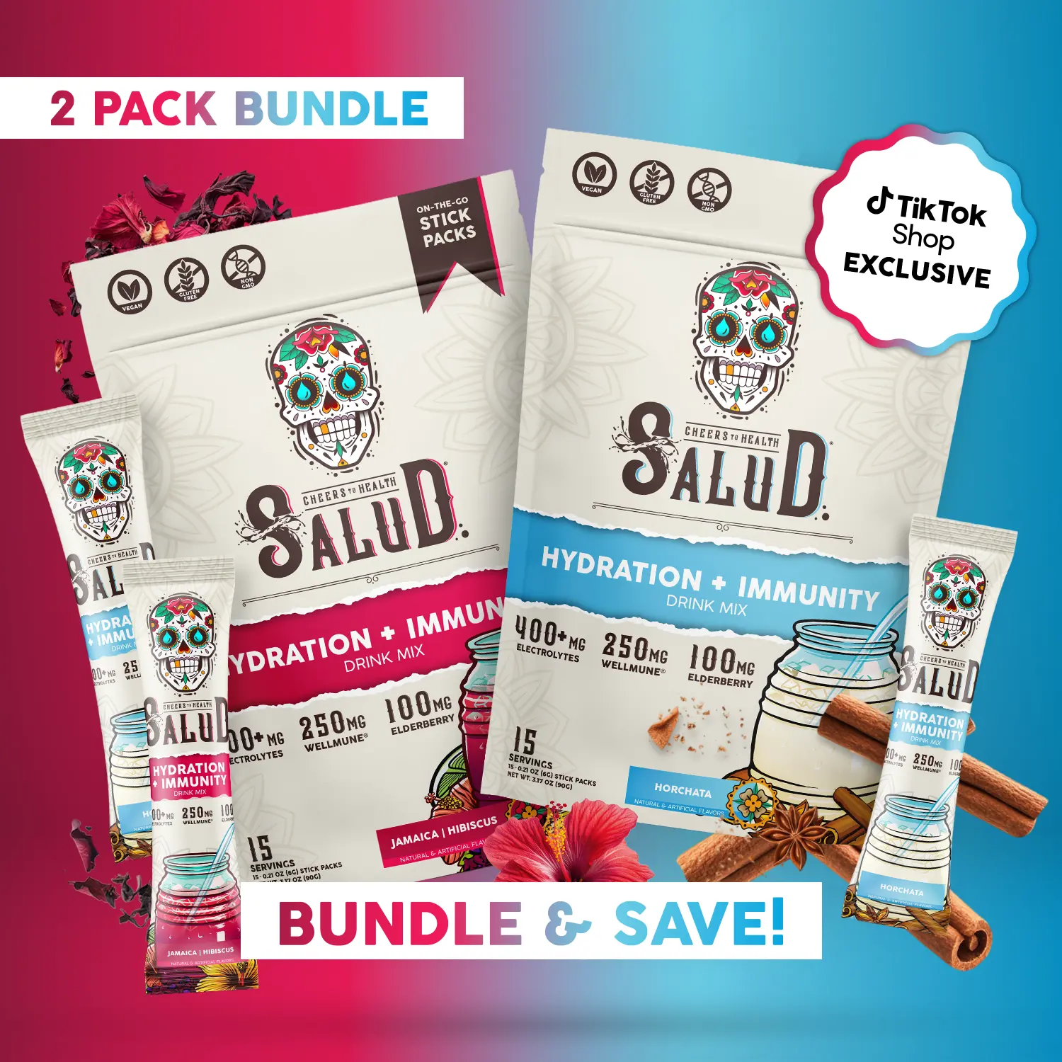 Salud’s Best-Selling Flavor Bundle includes Horchata & Hibiscus—hydration + immunity support with electrolytes and real flavor you’ll crave 🌸🥛 #saludhydration #horchatadrink #immunityboost #tastesalud #Tiktokshopcreatorpicks @Taste Salud