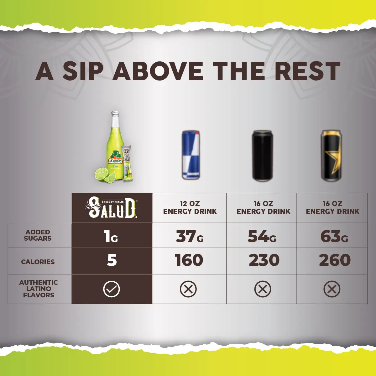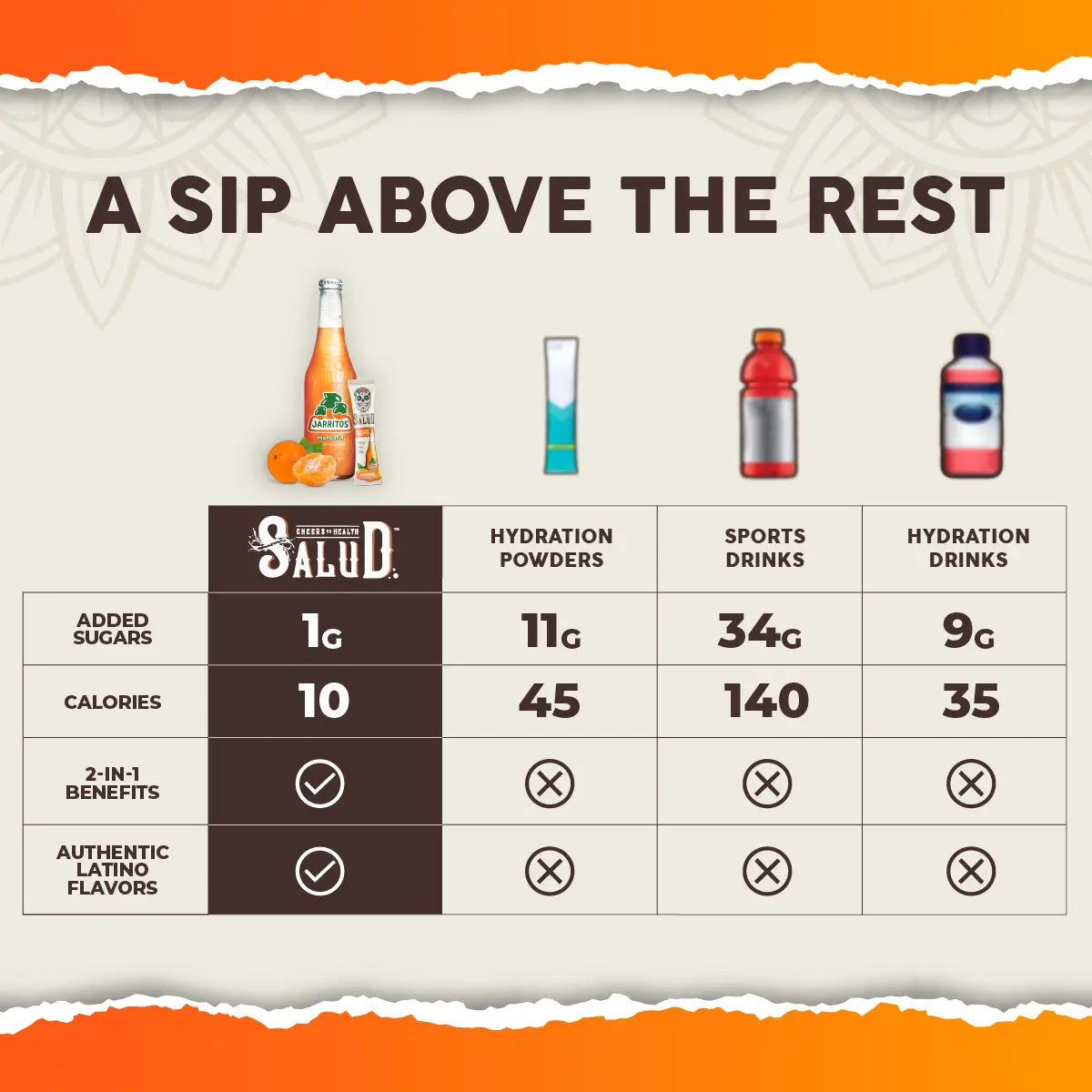 ·US vs THEM - Unlike other sports drinks and hydration multipliers that are loaded with sugars and artificial dyes, Salud will turn plain water into a mouth-watering Agua Fresca drink with only 1g of added sugar and 10 calories per serving. So delicious you might forget each serving is packed full of powerful benefits!