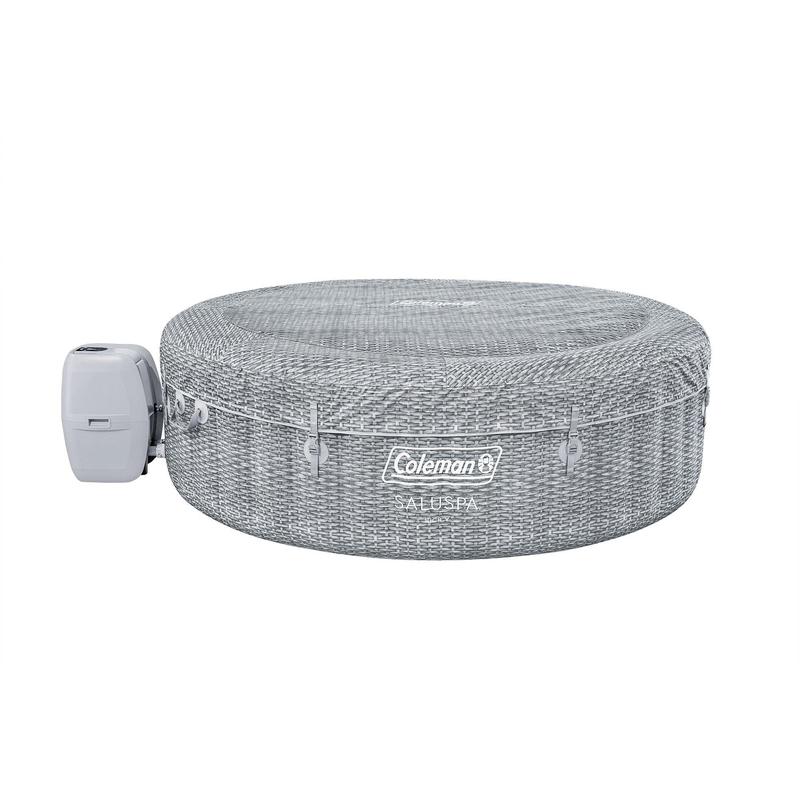 Relax in the Sicily SaluSpa Inflatable Hot Tub by Coleman, designed for up to 7 people. Featuring 180 AirJets, it creates a soothing, bubbling massage experience. Built with durable DuraPlus materials and a Freeze Shield, it maintains shape and protects against cold. The reinforced cover locks in heat, ensuring readiness for your next soak. Perfect for year-round relaxation.