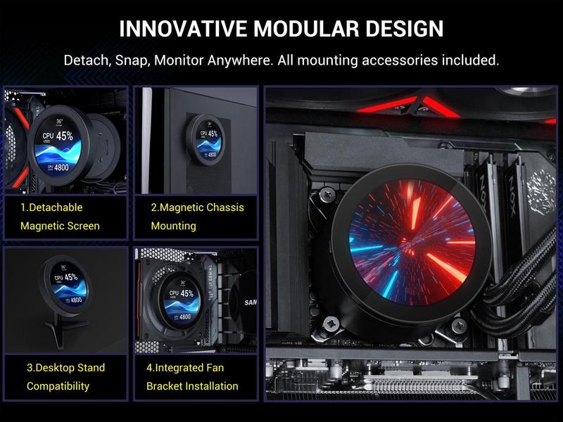 Introducing the SAMA Q70, a 360 AIO with an LCD screen that brings modular functionality for enhanced customization. It seamlessly blends high-performance cooling with striking design, delivering a dynamic PC cooling experience that balances aesthetics and efficiency.