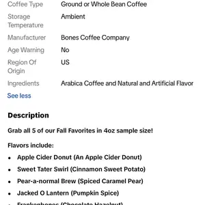Ordered those based off their description. I shouldn’t have to choose between believing the picture or the description on the product that I’m receiving the description is not where you market your other fall flavors. Sad AF :( Good company Is the only reason for not two stars. Again :( !