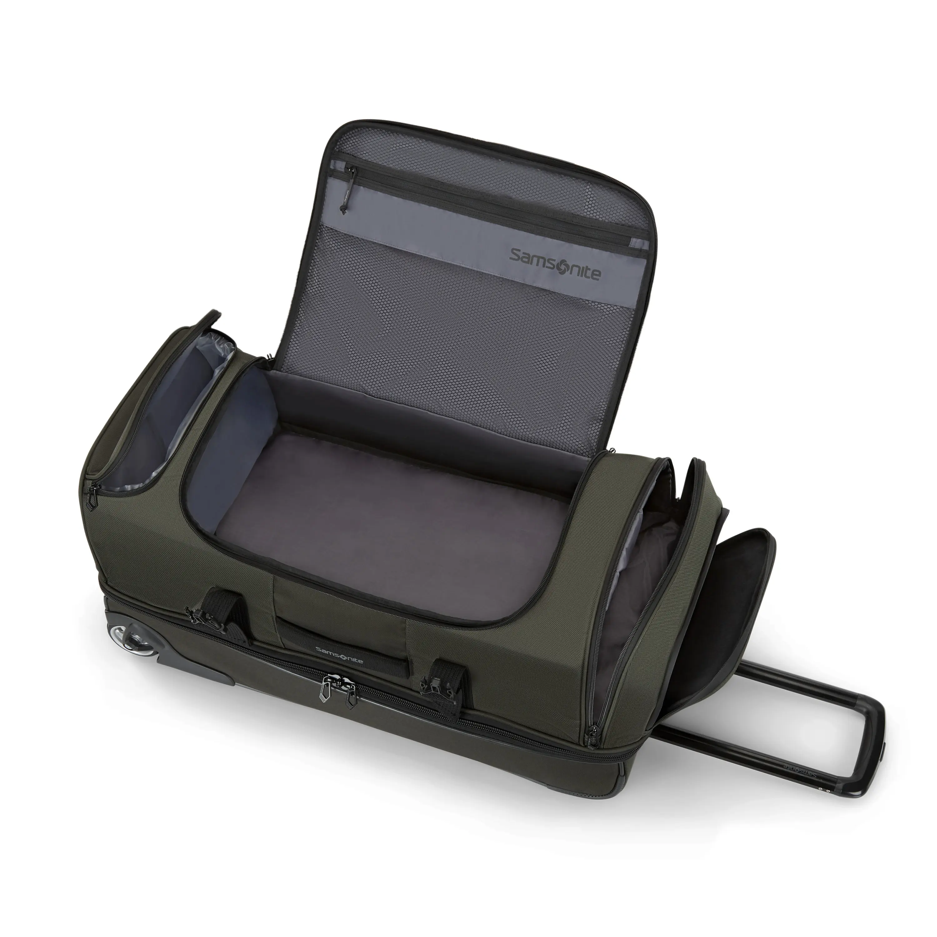 Drop bottoms compartment allows for additional packing capacity