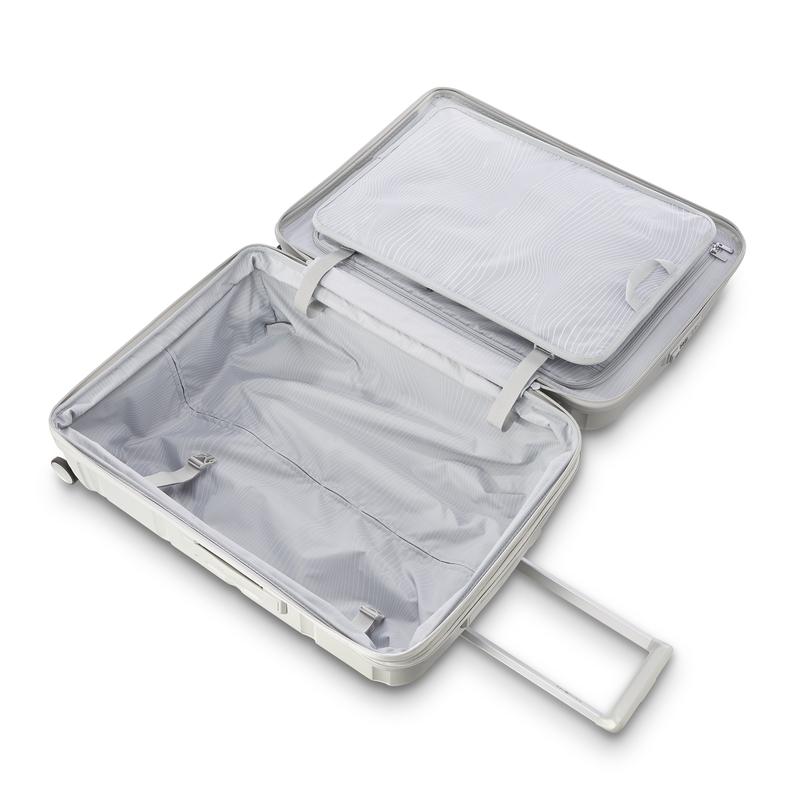 Durable polypropylene shell constructed in a clean, contemporary design Expands 1.5” Built-in TSA lock with an integrated USB port (carry-on sizes only) and internal battery pocket Smooth, dual spinner wheels for easy handling and long-haul travel across any surface Ergonomic retractable trolley handle with multi-stop Right Height™ adjustability Recyclex® interior liner fabric made from 100% recycled plastic bottlesInnovative multi-functional KompressPak™ panel divider offers a compression system creating a neat organization while providing additional space to add more last minute souvenirs. Our unique KompressPak™ divider also comprises a lining zippered pocket for your small odds and ends, while the secondary WetPak™ zippered pocket keeps damp items contained.Dimensions & Weight Large Overall Dimensions: 30in H x 20.5in L x 12.8in W Body Dimensions: 28in H x 19.5in L x 12.5in WWeight: 10.1 lbs