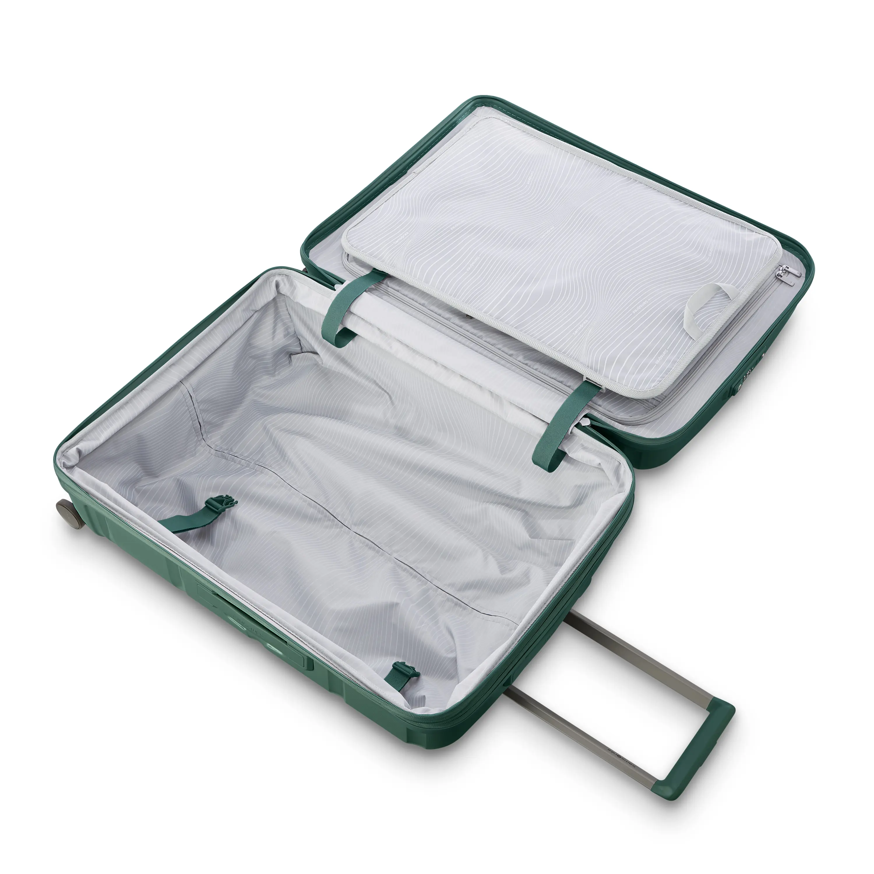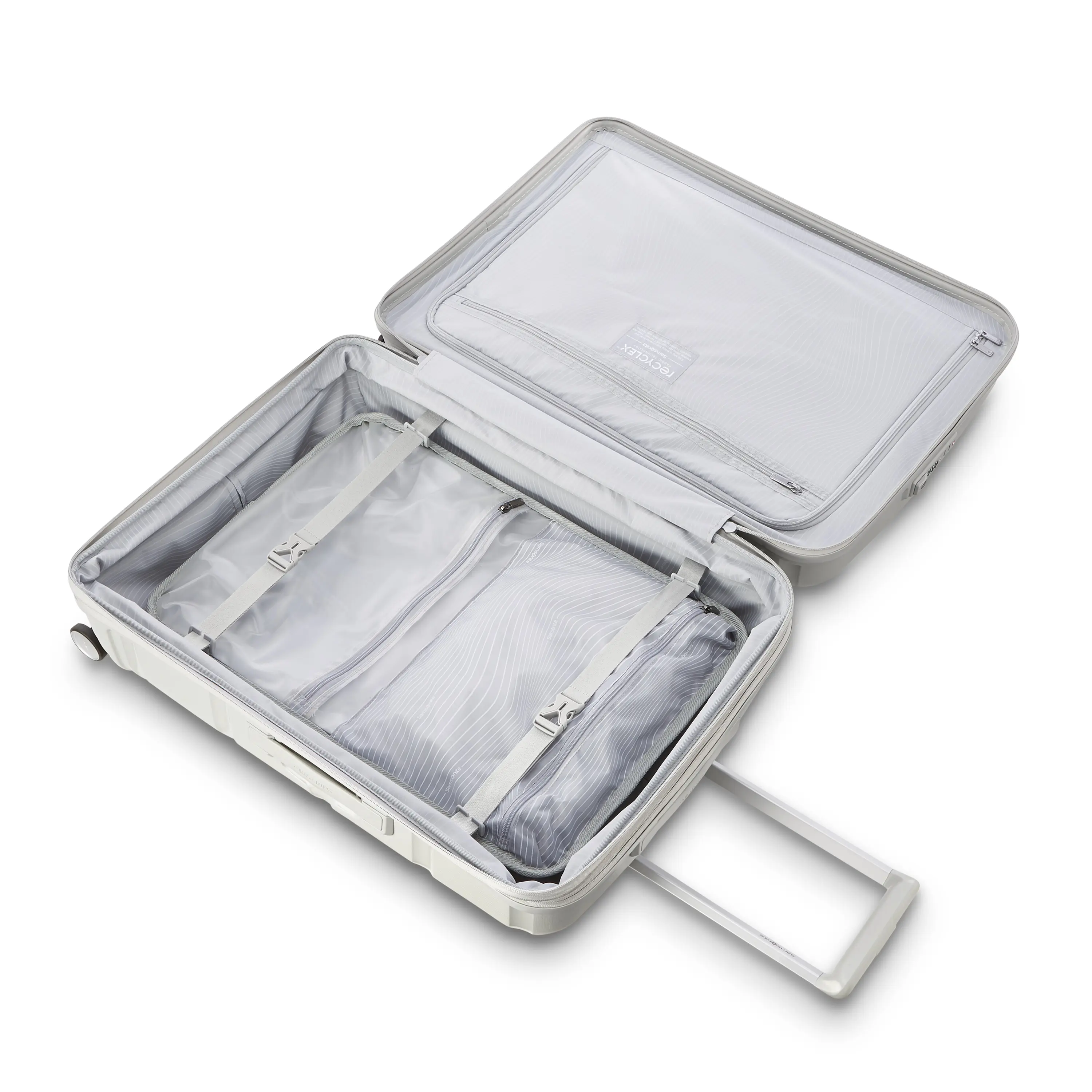 Durable polypropylene shell constructed in a clean, contemporary design Expands 1.5” Built-in TSA lock with an integrated USB port (carry-on sizes only) and internal battery pocket Smooth, dual spinner wheels for easy handling and long-haul travel across any surface Ergonomic retractable trolley handle with multi-stop Right Height™ adjustabilityRecyclex® interior liner fabric made from 100% recycled plastic bottlesInnovative multi-functional KompressPak™ panel divider offers a compression system creating a neat organization while providing additional space to add more last minute souvenirs. Our unique KompressPak™ divider also comprises a lining zippered pocket for your small odds and ends, while the secondary WetPak™ zippered pocket keeps damp items contained.Dimensions & Weight Medium Overall Dimensions: 27in H x 18.7in L x 12in W Body Dimensions: 24in H x 18in L x 12in WWeight: 8.8 lbs
