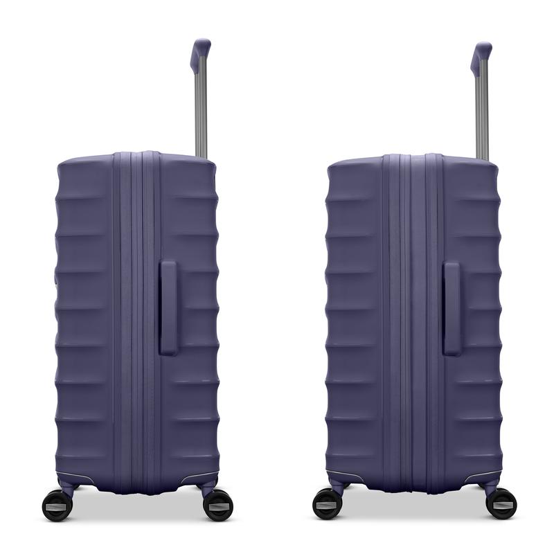 Lightweight polypropylene shell Expands 1.5" Combination TSA lock EAZYHOOK™ to carry last-minute items Shock-absorbing spinner wheelsRightHeight™ handle with multiple 1-inch height adjustmentsRemovable Kompresspak™ garment divider Two multifunctional packing cube Holder for your AirTag™ deviceDimensions & Weight Large Spinner Overall Dimensions: 31in H x 20.6in L x 13.5in W Body Dimensions: 29in H x 20in L x 13.5in WWeight: 10.2 lbs